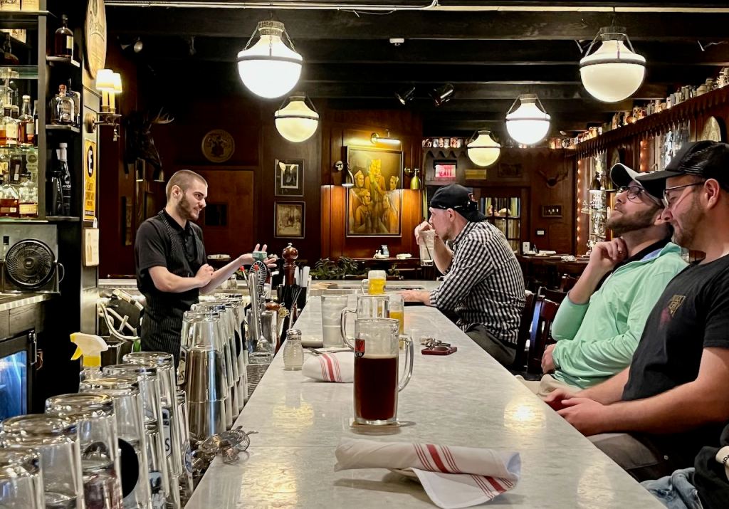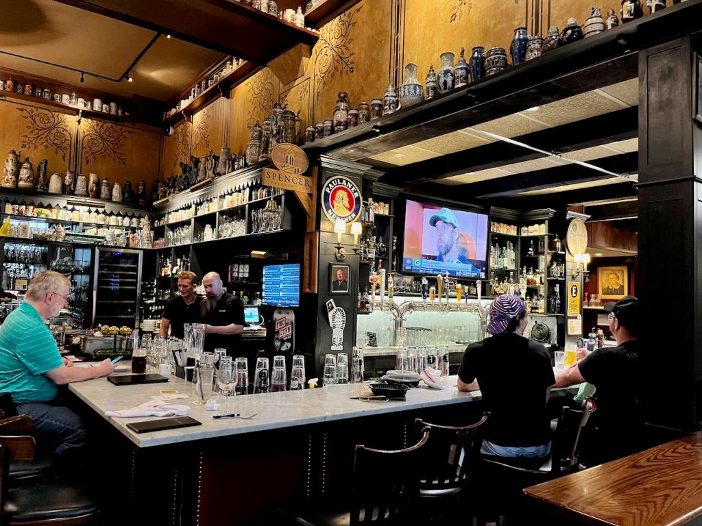 Later on I sought out dinner. My gut reaction would not to do German food but Springfield’s longtime most famous restaurant is the German restaurant Student Prince Cafe (since 1935!). I had a nice time sitting at the bar. Unlike many big old-school places, Student Prince seemed really well run and the food was fine, the bar staff friendly and professional. Cross cultural note: since 2014 until very recently this German restaurant has been run by a local Asian-American restauranteur named “Andy” Sua Sun Yee, who had just died of cancer. I know this because there were notes of his passing at the entrance. The interior is dark but full of fascinating old stuff.