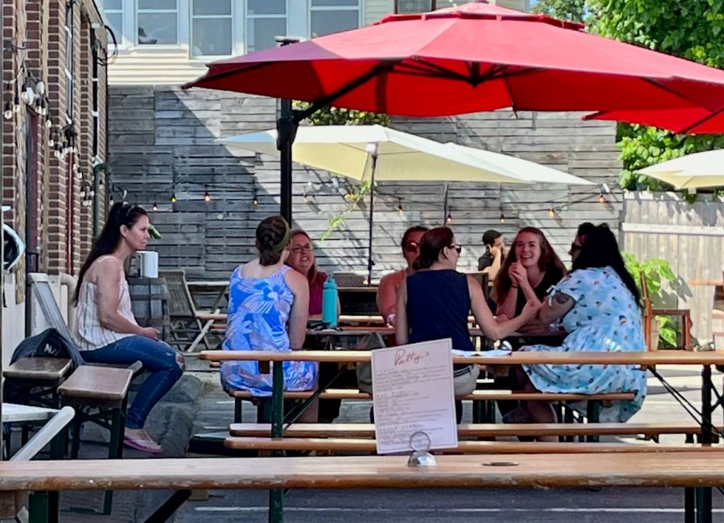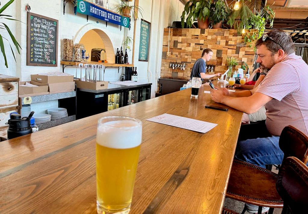 Breweries and local coffee houses are always good destinations when you do not know a city. It was a relief when I bicycled across a major set of railroad tracks and arrived at New Park Brewing, which I now know is at the beginning of the more prosperous neighborhoods of west Hartford. I stopped for a beer. They had outdoor seating.