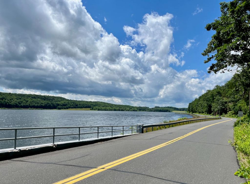 On the far side of New Britain CT I discovered a lovely route over a small mountain towards the next town Southington CT. The route necessitated biking one or two miles up a very steep hill and I found myself alongside the local water source. There was almost no car traffic; it made the climb worthwhile.