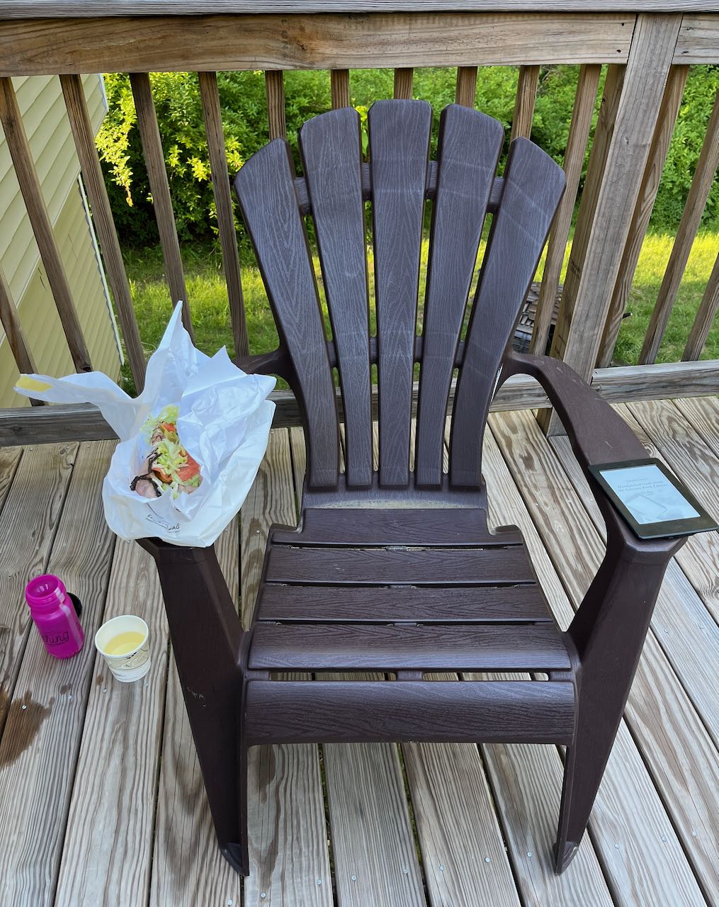 I sat on their deck overlooking the backyard and ate my delicious Italian-style sandwich; once again so much better than Subway. I read my Kindle. In a strange way it way quite peaceful.