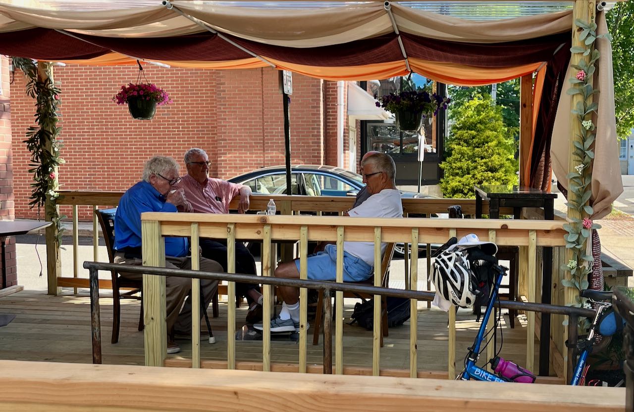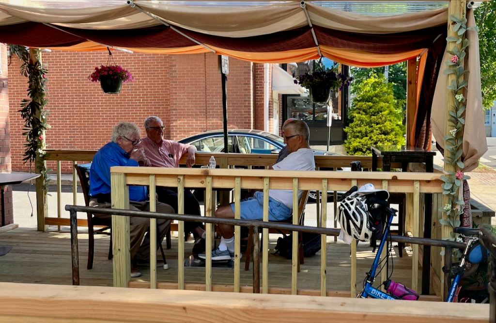 Across the patio three old guys looked and talked like what I imagine Yale professors would be like.