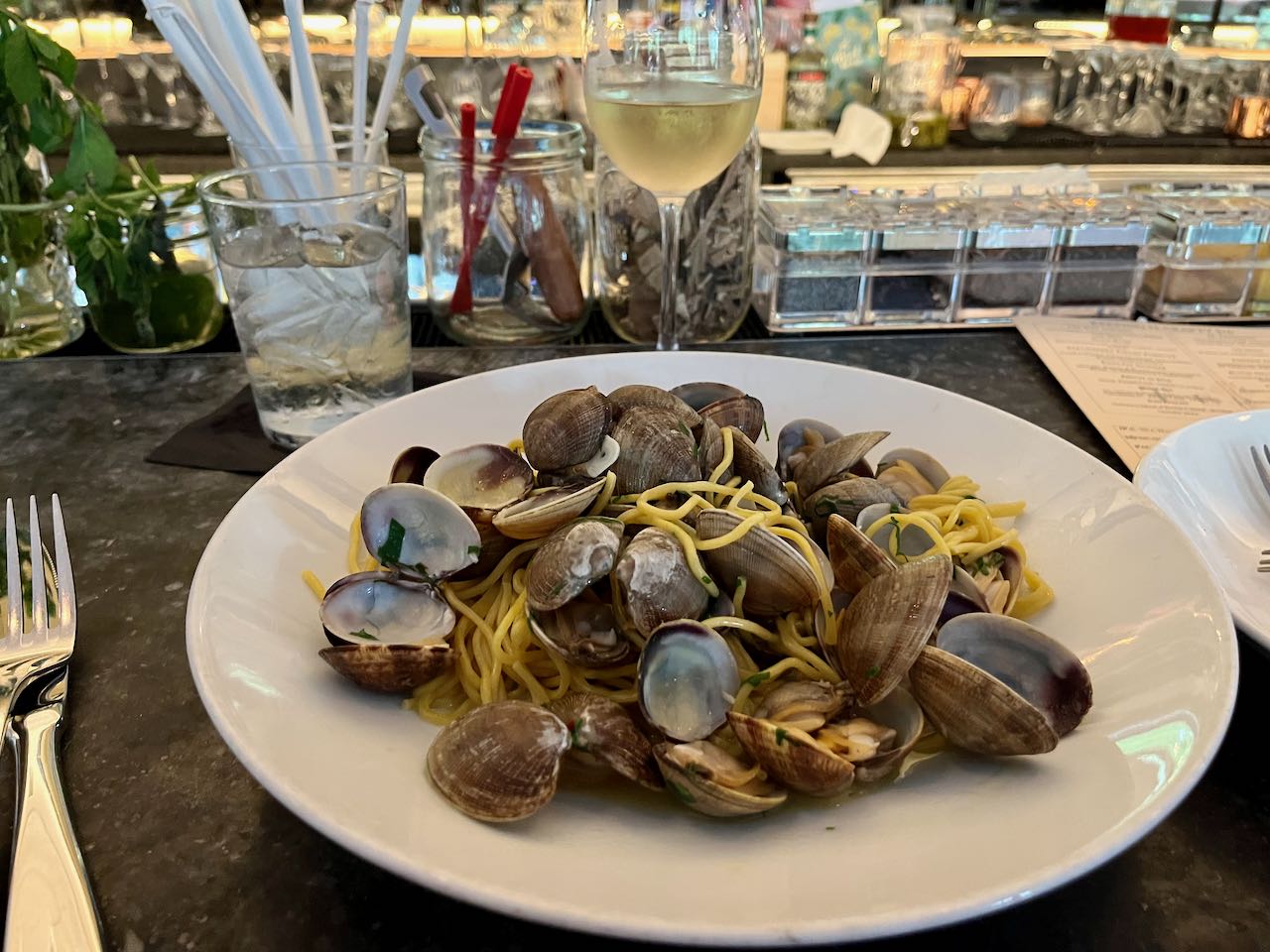 Having clams and linguine in an Italian restaurant up North in Connecticut, even here in a Interstate highway hotel, it was bound to be good.