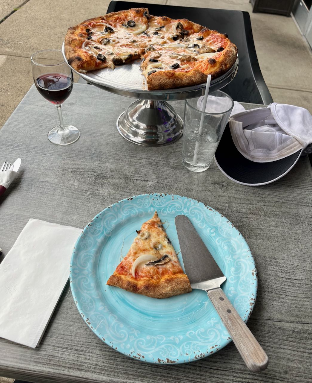 I was only a mile from the train station and I still had an hour before the 1:00 PM train. Time for lunch, more Italian food! I ate almost this whole pizza.