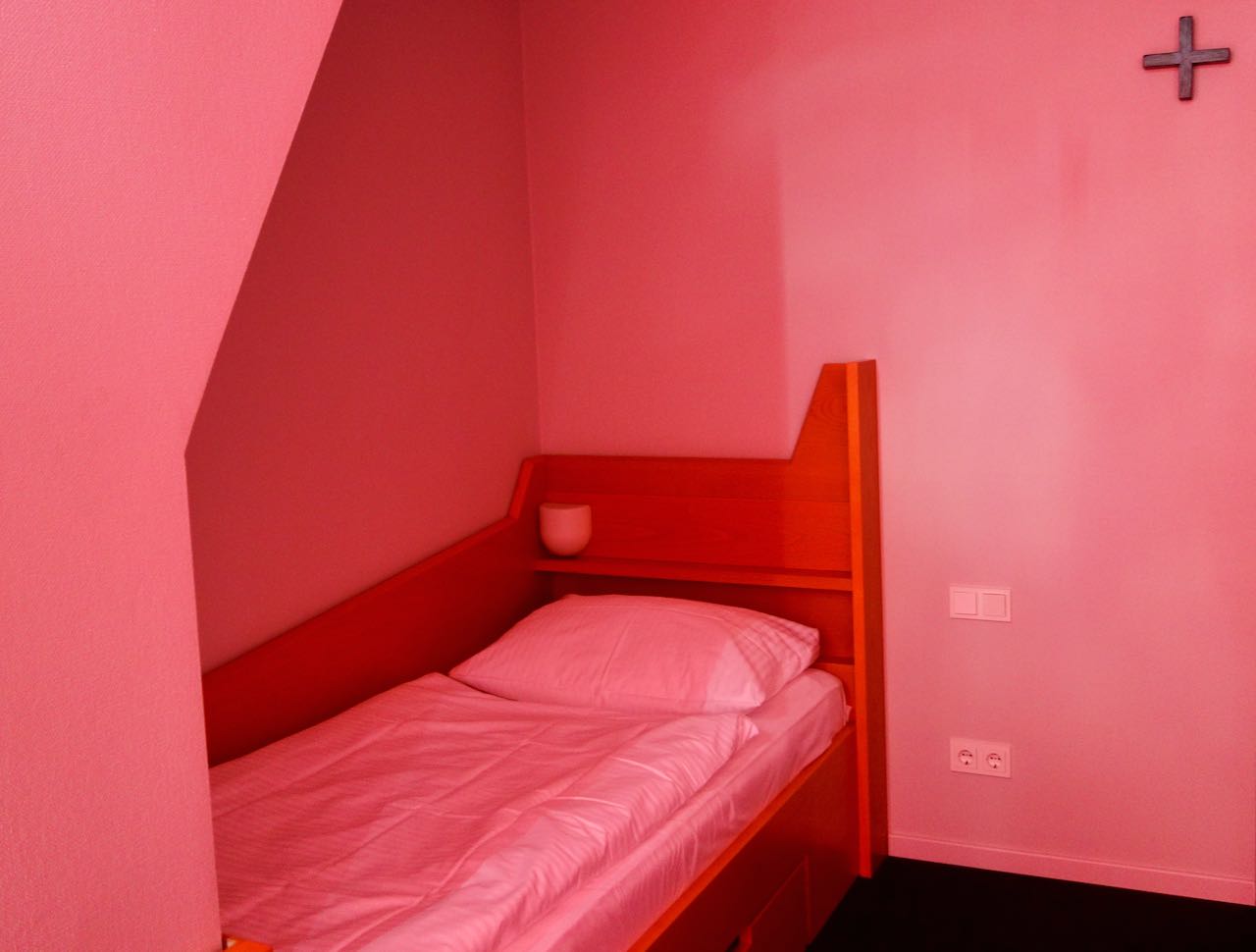 The rooms were small and spartan and spotlessly clean, with TV’s and balconies. It was part of a modernist church complex that overlooks other churches. In the morning there was a lot of ringing of bells.