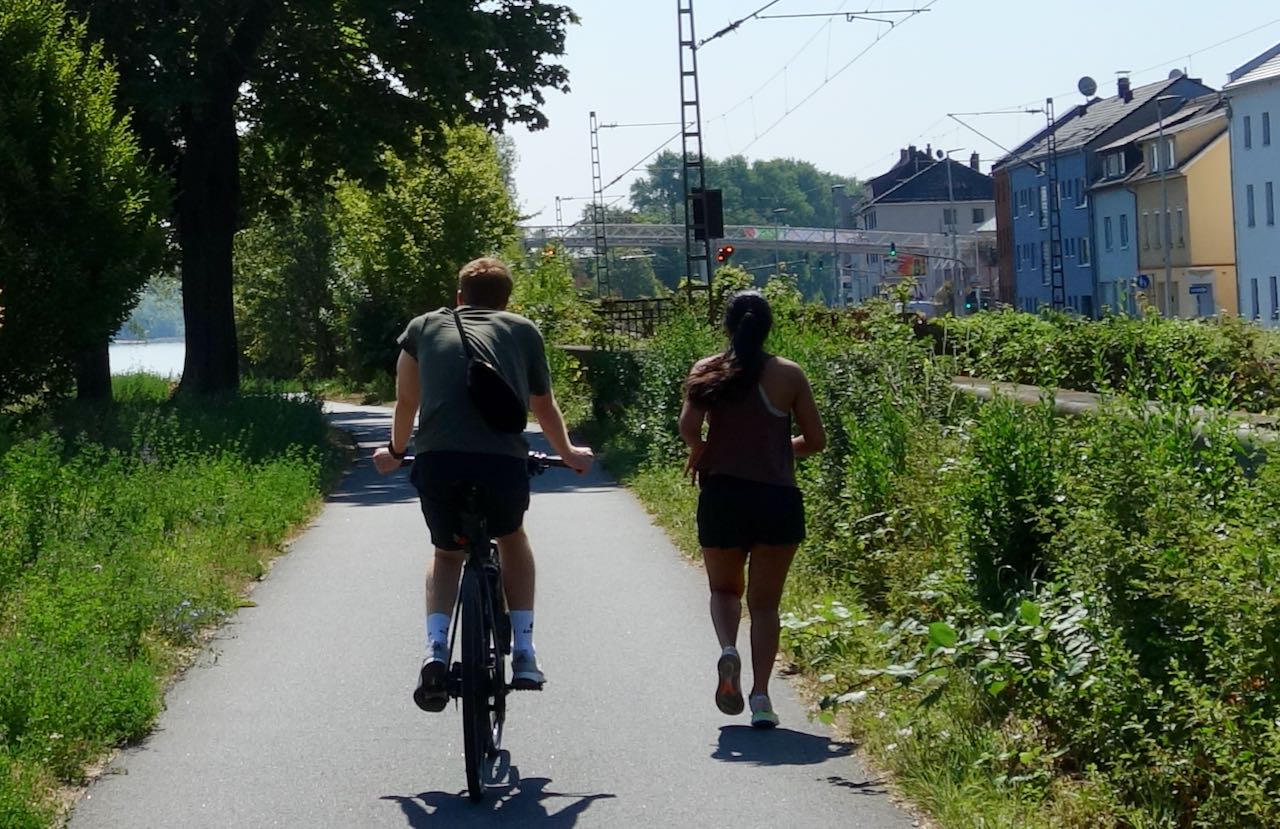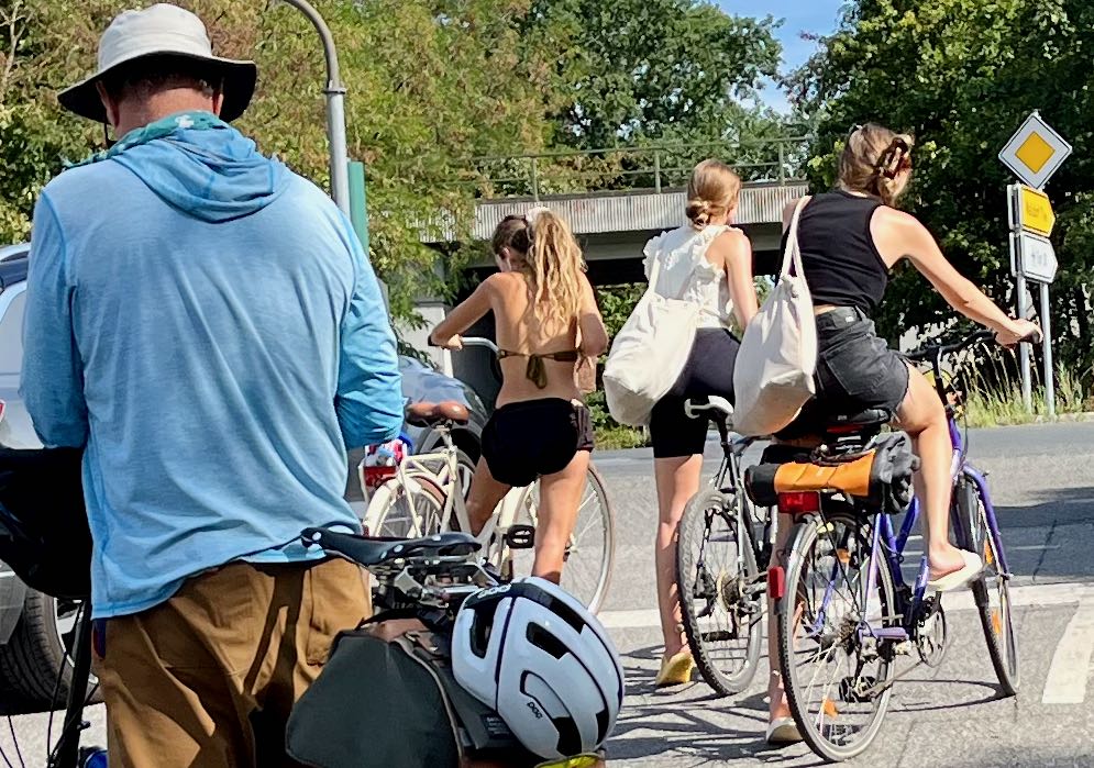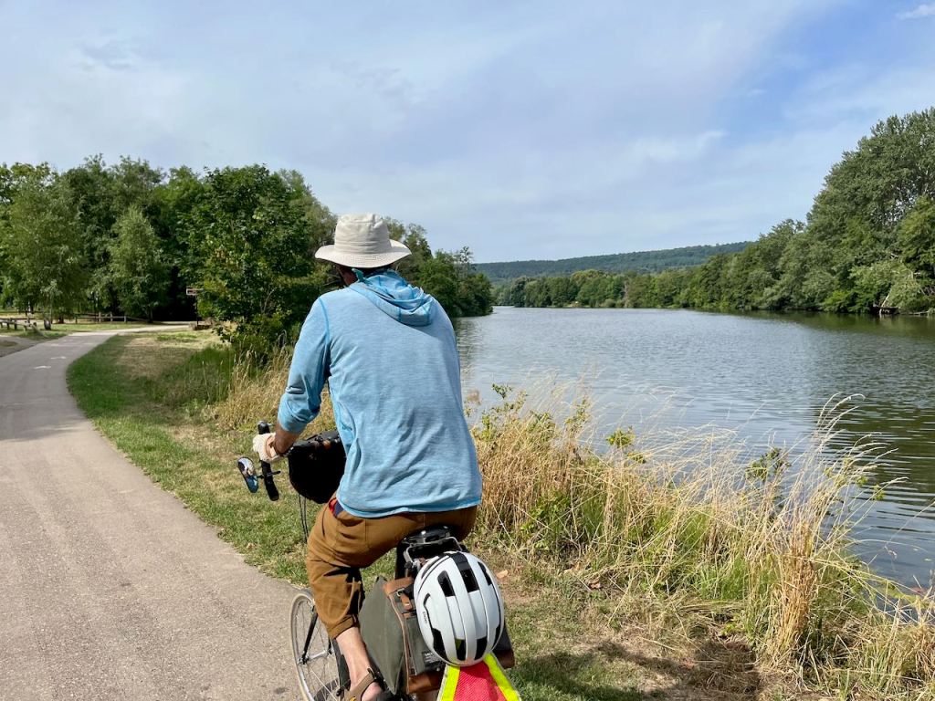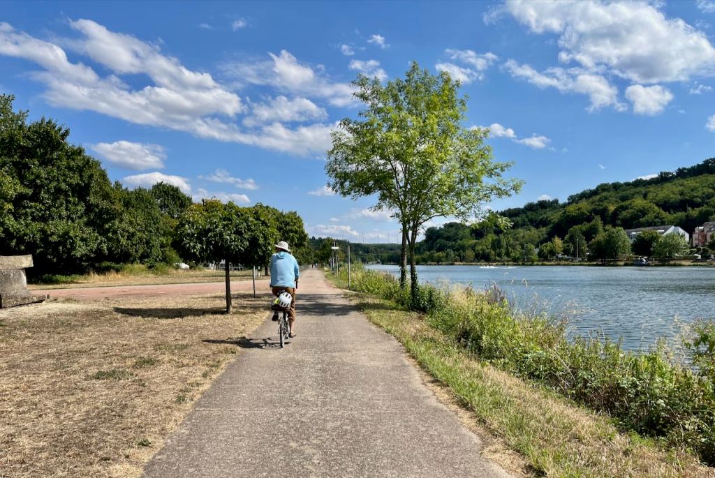 The signs on the riverside bike path were less clear than in Germany, the path surface slightly bumpier.