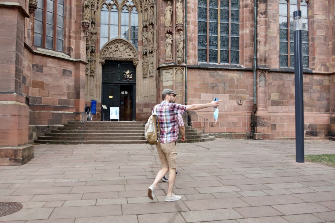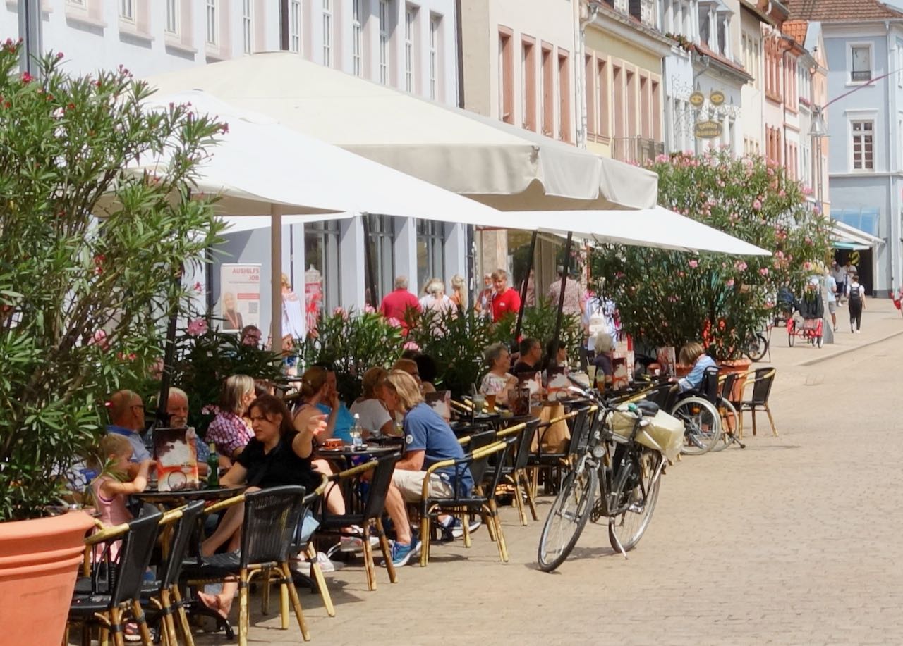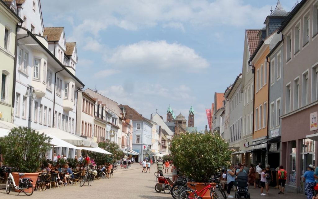 The town of Speyer is on the Rhine twenty something kilometers south and west of the larger cities Mannheim and Heidelberg. It was midday Saturday and the streets were full of people, although everyone wanted to sit in the shade of outdoor umbrellas, since it was about ninety degrees (F) outside.