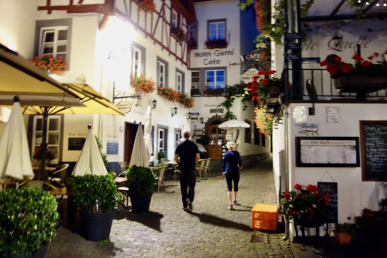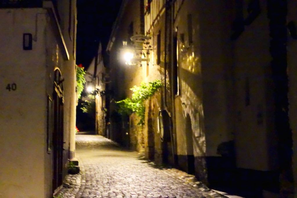 In this part of Germany and nearby France, finding villages that were not burned down in one of the two World Wars is difficult. Tom was instrumental in telling us about Beilstein (population 130), we might have missed it even on a bicycle, a historic enclave wedged between mountains and the Moselle River. The town is now a tourist magnet. I only got decent photos of Beilstein at night.