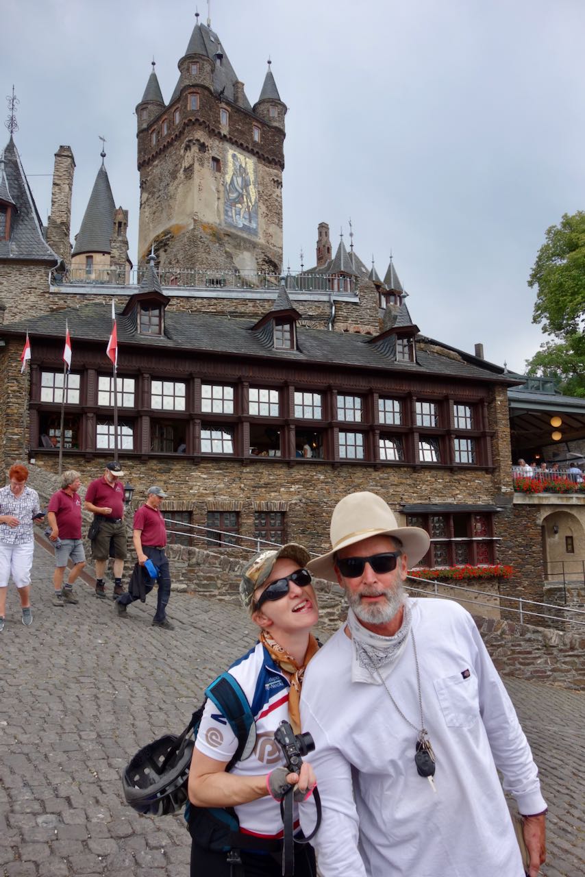 Cochem is the home of the Reichsburg Cochem, a thousand year old castle that was colorfully redone in the late nineteenth century. We dragged our bikes up a steep hill.