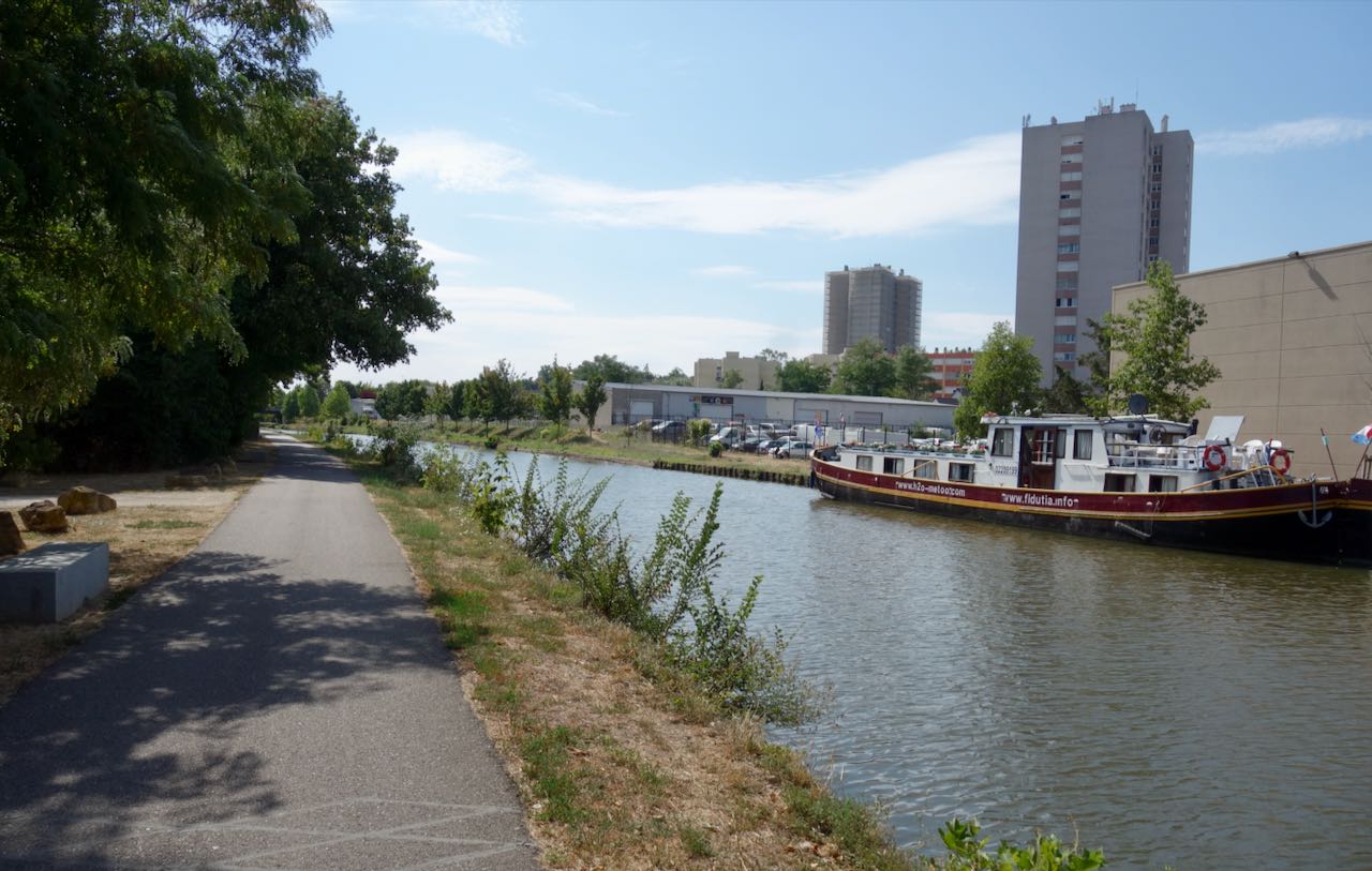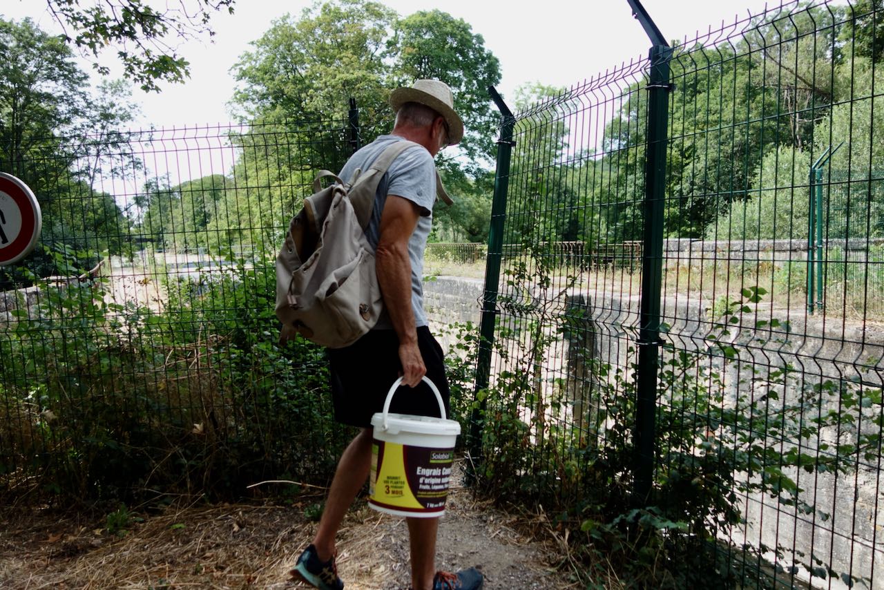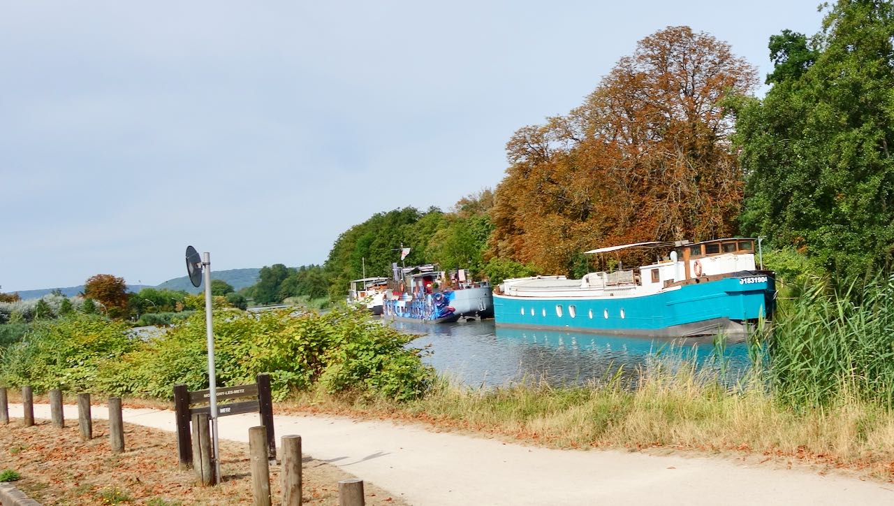 All was not perfect. We were in France not Germany. In a swampy region it was not clear which bicycle route was the best. We followed a fine gravel path along a canal until it degenerated into a rough gravel path, then, at a lock on the canal, a fence and a sign stating (in French) to go no further. What to do? A hiker about our age walked up. He sign-languaged us that everybody just walked around this fence. We waited for him to go first, then pushed our bicycles through a tiny opening in the fence.