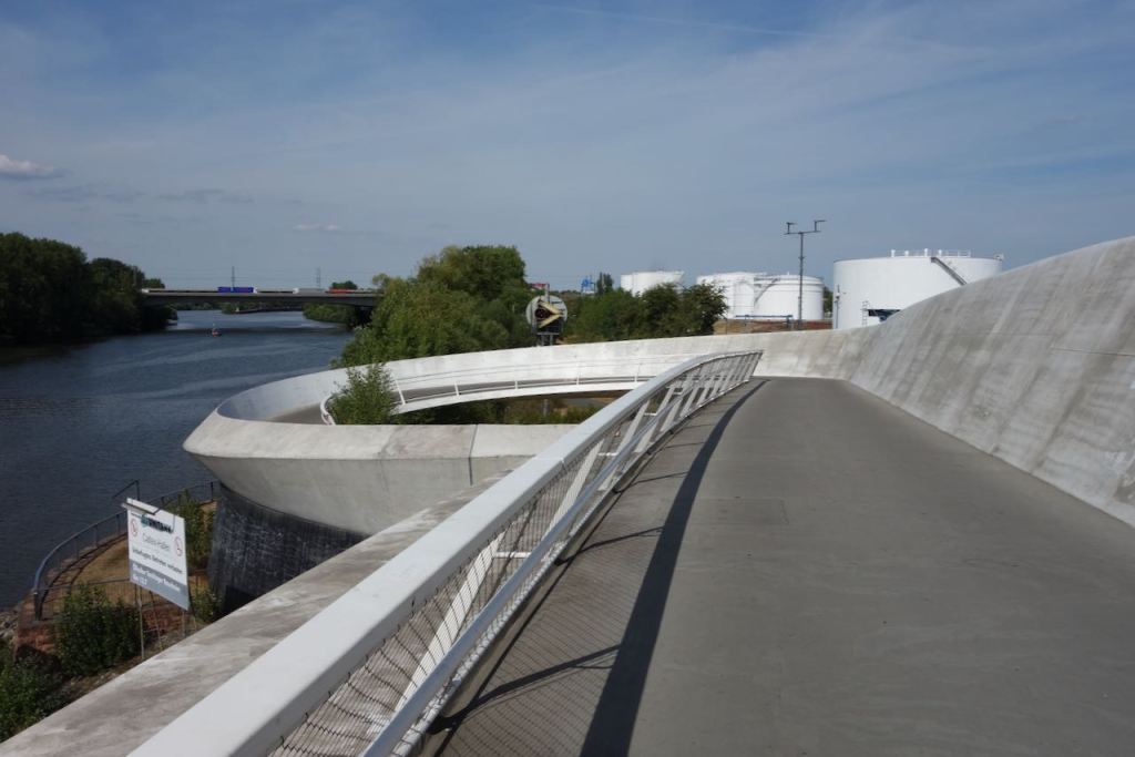 The Germans seemed to spare no expense in building this lovely bike path bridge over a canal.