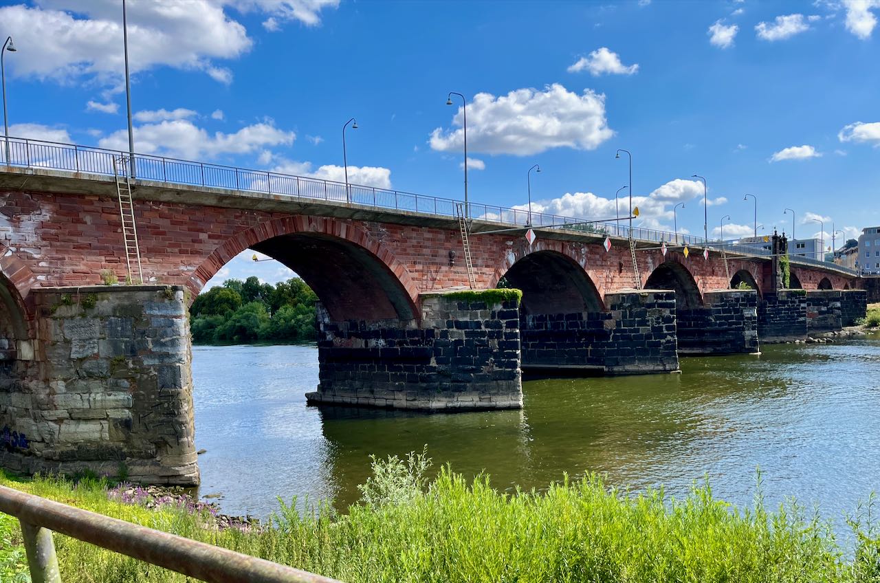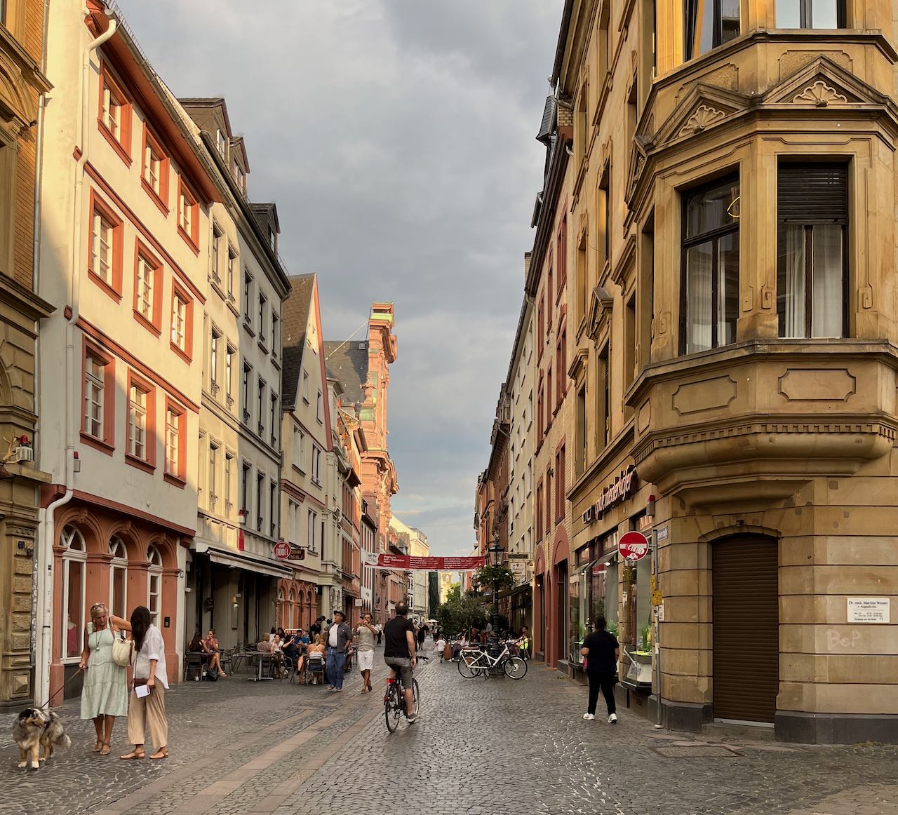 We continued cycling up to the city of Mainz which sits at the junction of the Main and the Rhine Rivers. We had to segue through various bridges and roads to get downtown.