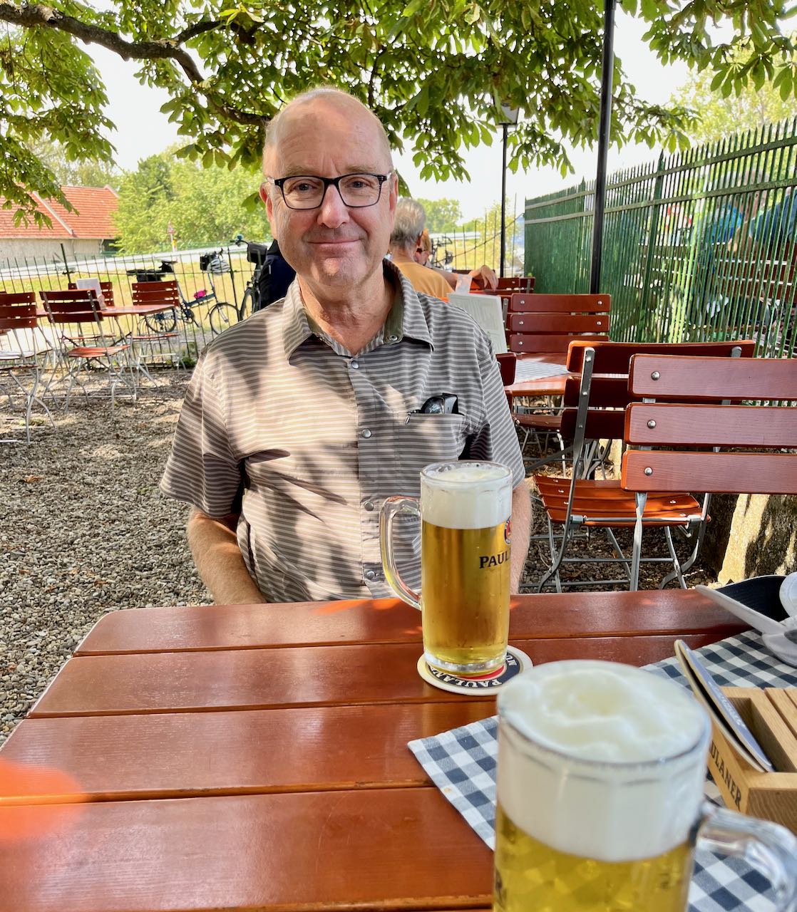 Cycling further on, mid-afternoon we stopped at a beer garden along the bike trail. How German.