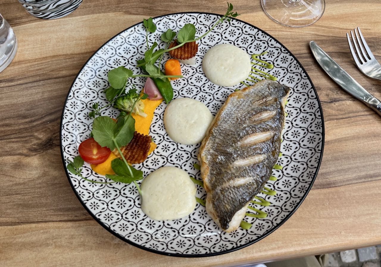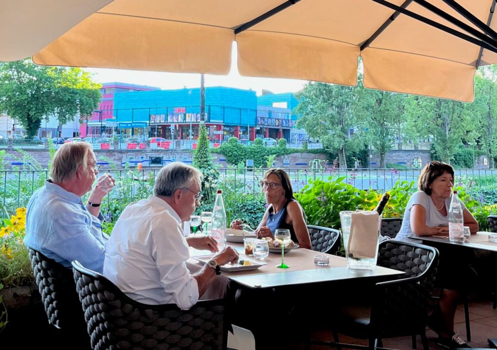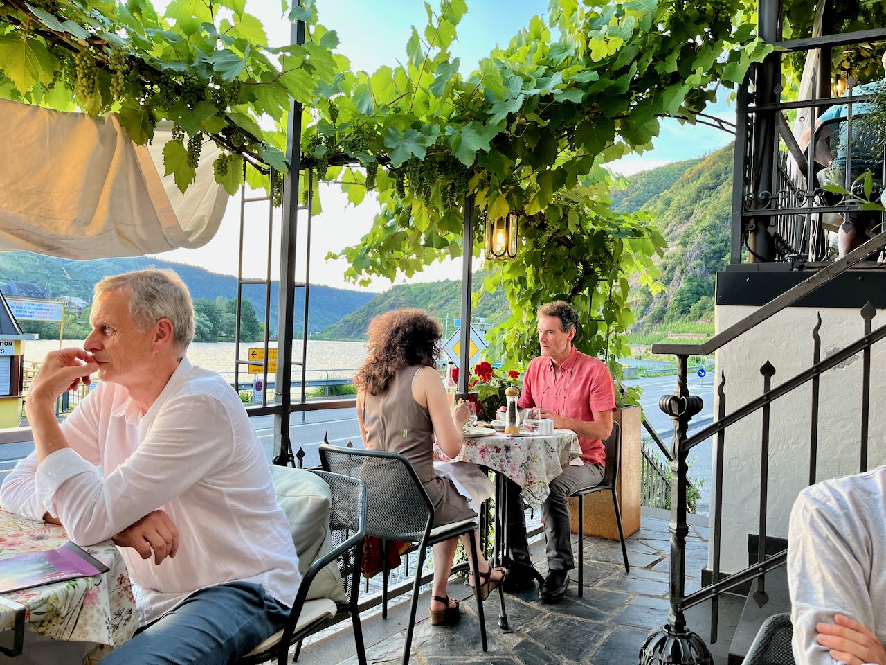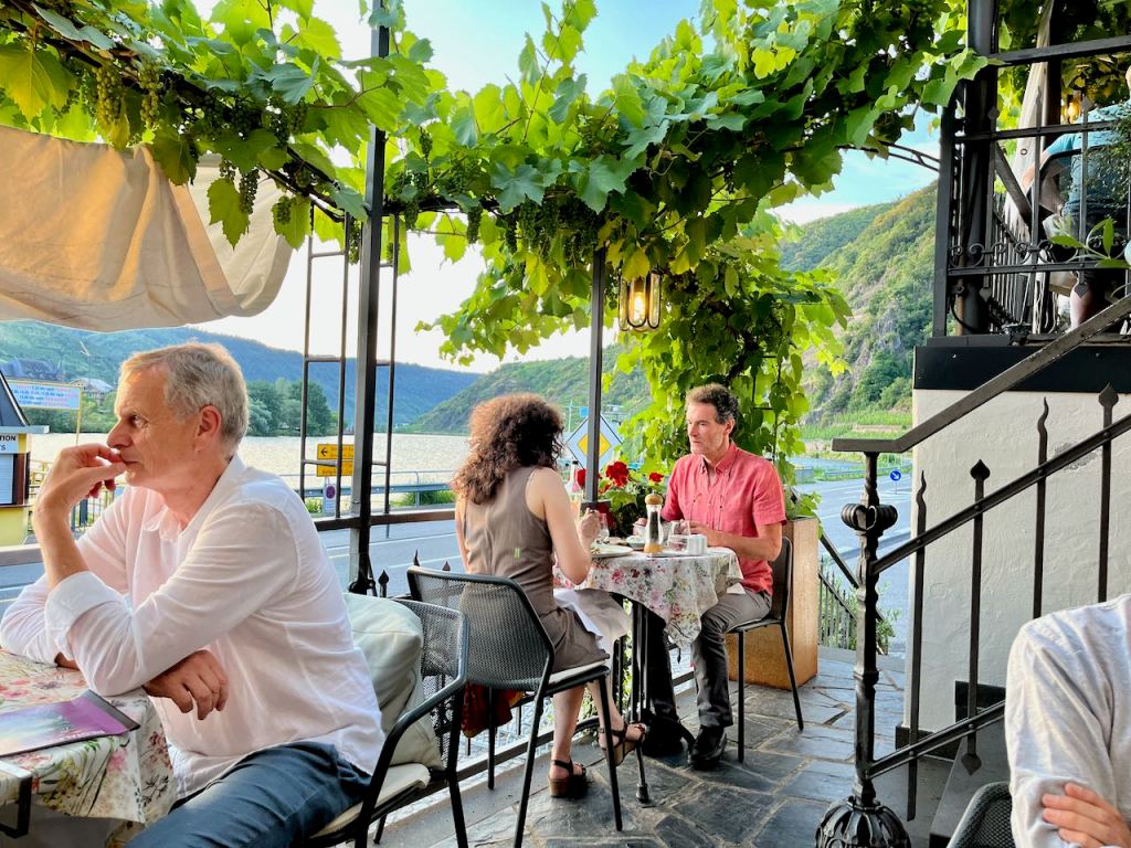 The tiny town is filled with hotels. We all had dinner together at Tom and Jana’s hotel, our best meal in Germany. We sat outside on the terrace overlooking the Moselle River and drank local rieslings. We shared a ceviche appetizer. I had a seafood entree.