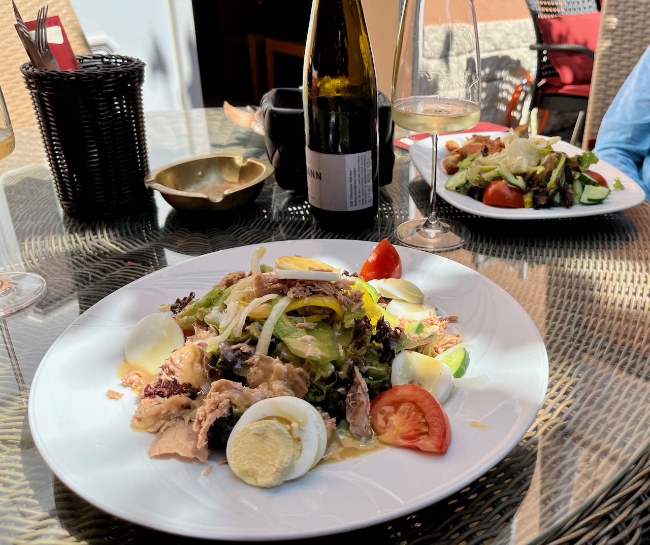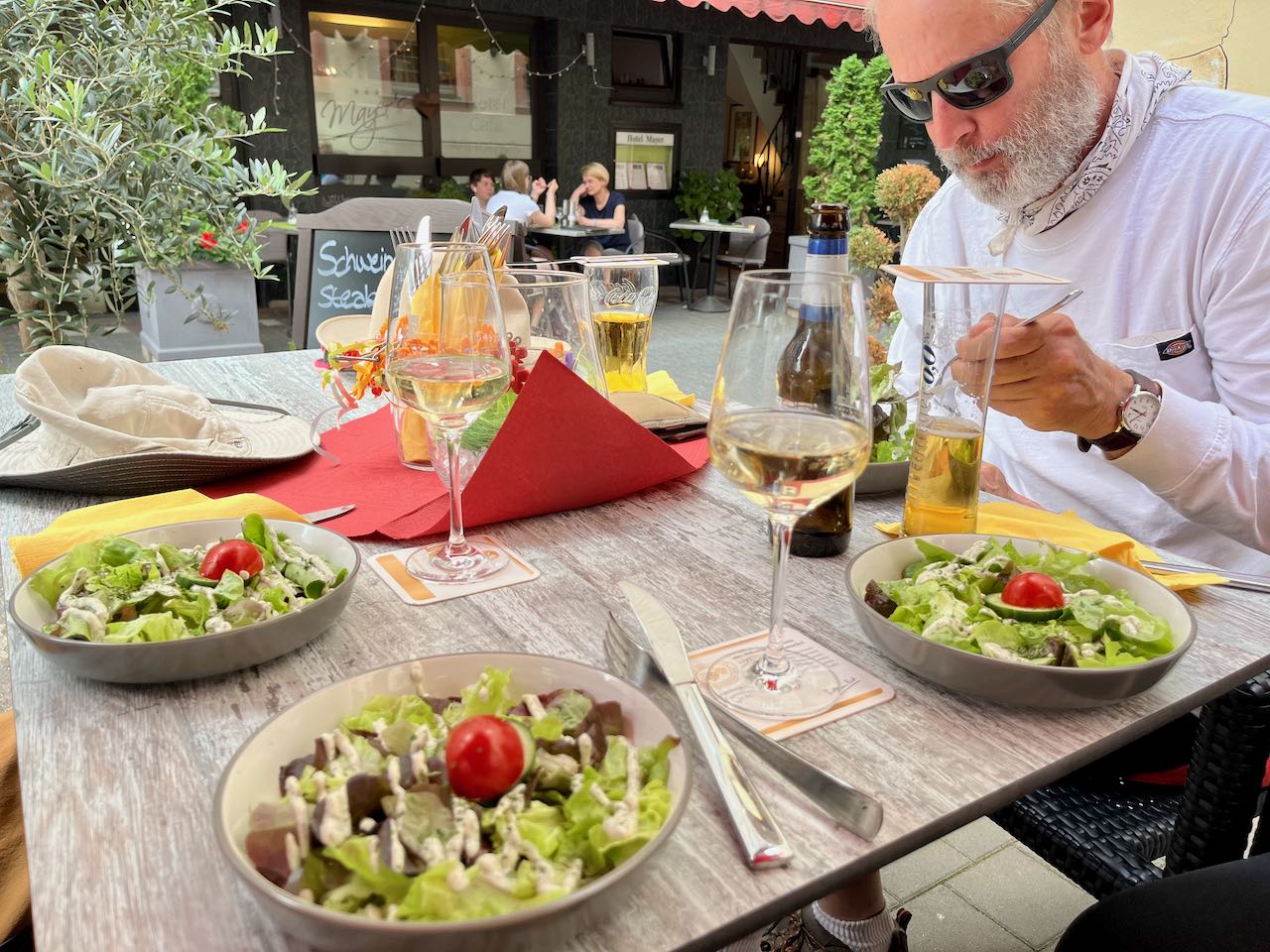 Lunch that day was in the town of Trittenheim. Once again the best looking restaurant in this German town advertised itself as Italian; the Ristorante Pinocchio. We had delicious salads accompanied by a bottle of local (German) riesling wine.