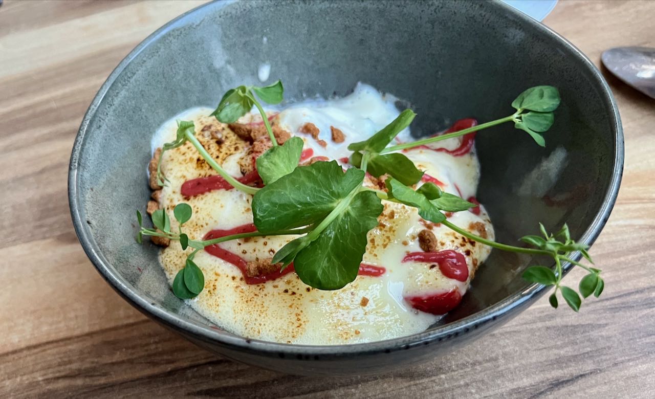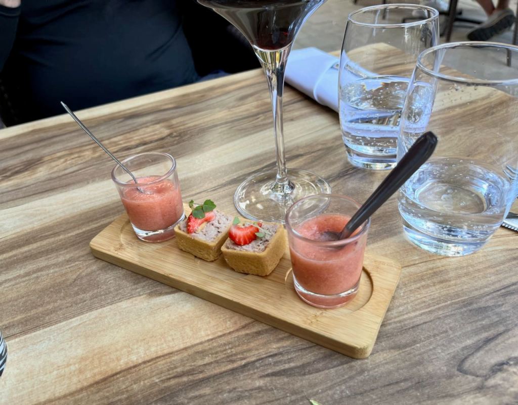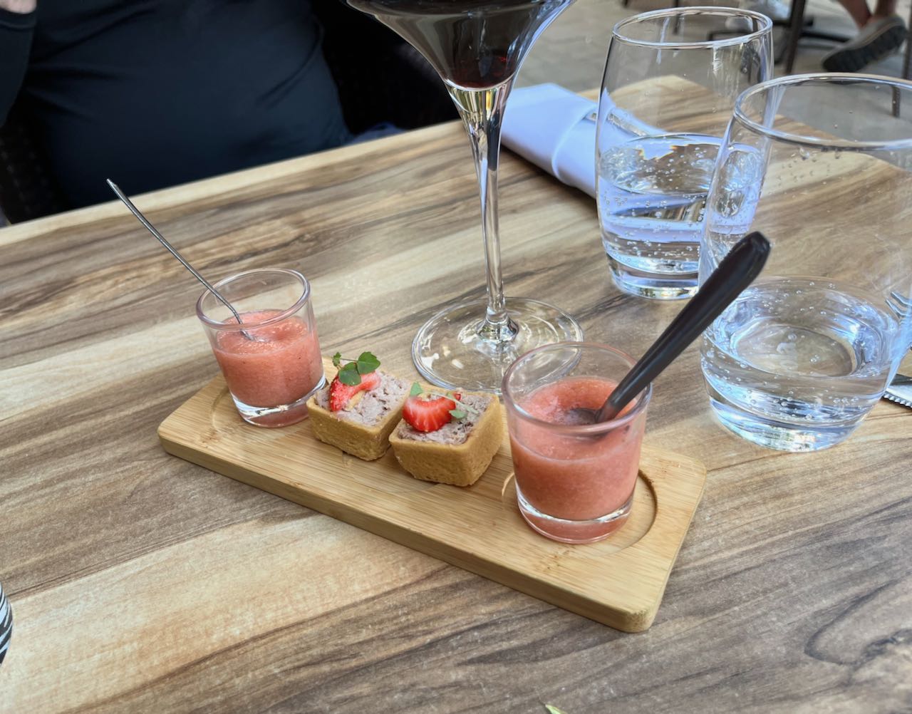 The meal started with a freebie, an amuse bouche of fresh tomato compote and bite sized terrine tarts, with a slice of strawberry on each.