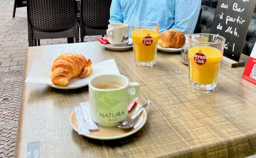 The next morning we had breakfast at a bar on the street of central Metz; their breakfast special; coffee (any kind), croissant, and a large orange juice all for three Euro, delivered with a smile, on real plates to your table on the street. Normally I am not a huge fan of orange juice but that rush of sugar this day seemed to hit the spot.