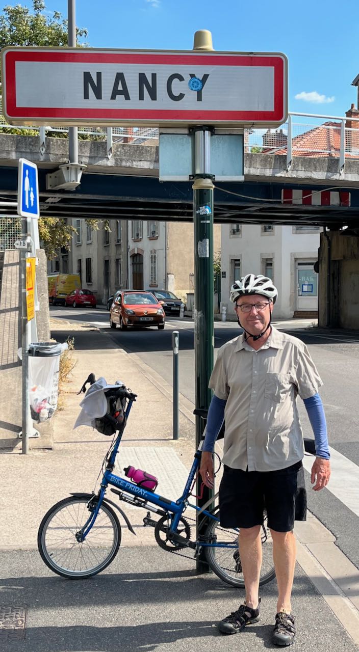 We refreshed ourselves enough that we got back on the bicycles and finally made it into the city of Nancy. I texted this photo to back home to my friend Nancy Karukas.