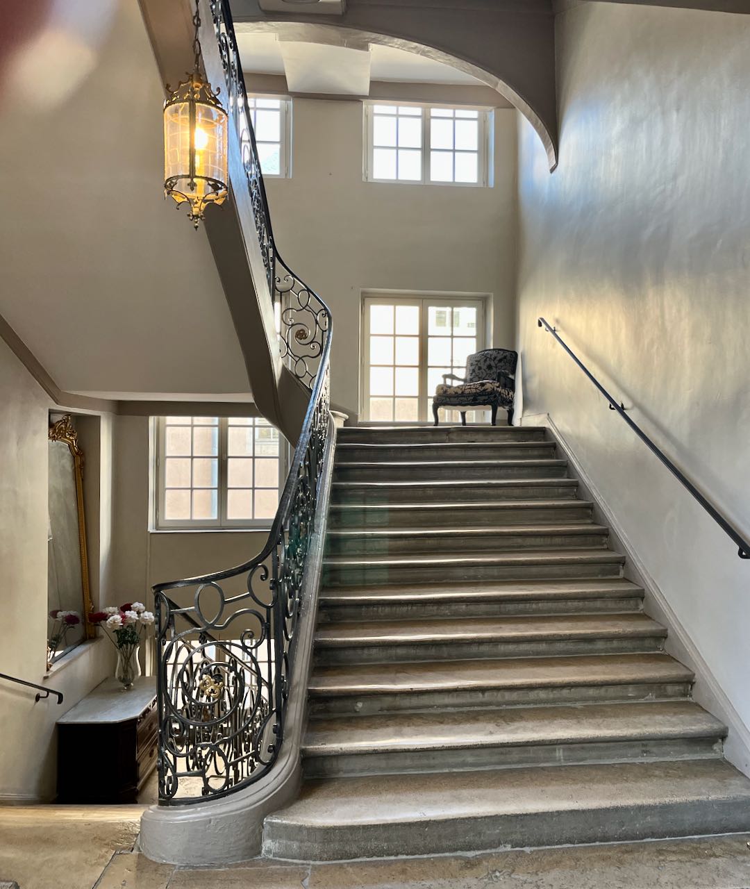 Our hotel in Nancy was in the old part of town, had low cost attic level rooms, and an amazing staircase. I had been thinking about the subject of stairways for years; why do commercial and apartment buildings back in the USA not have inviting staircases like those in Europe? The answer, I think, is that in USA fire codes require two exits for buildings, in most of Europe it is only one. I don’t think Europeans are massively burning up in buildings. Many Americans are overweight but we have to go out of our way to walk up stairs in our buildings. In Nancy I did not even consider the elevator.