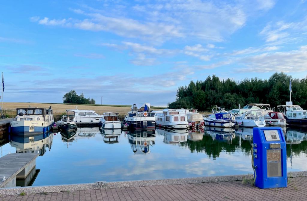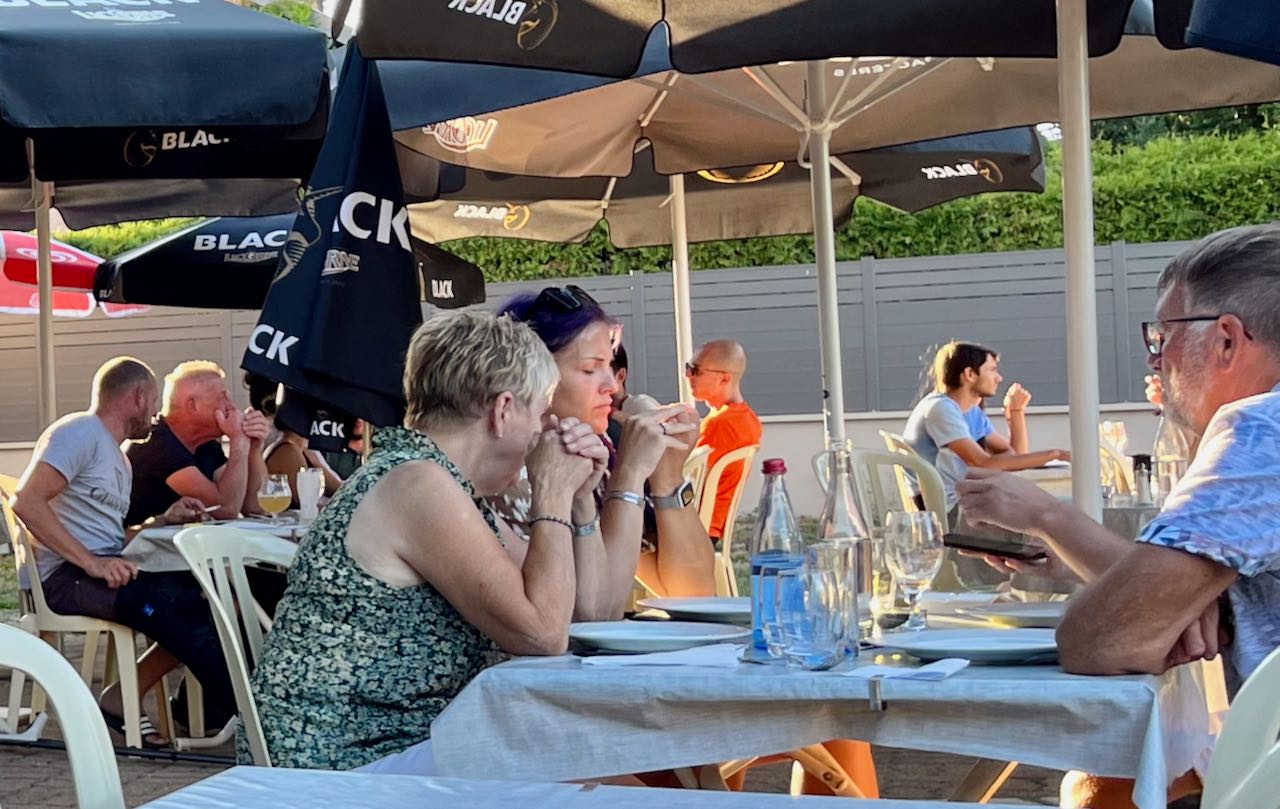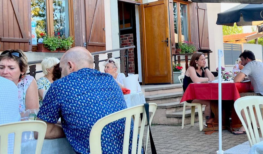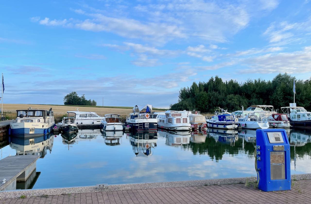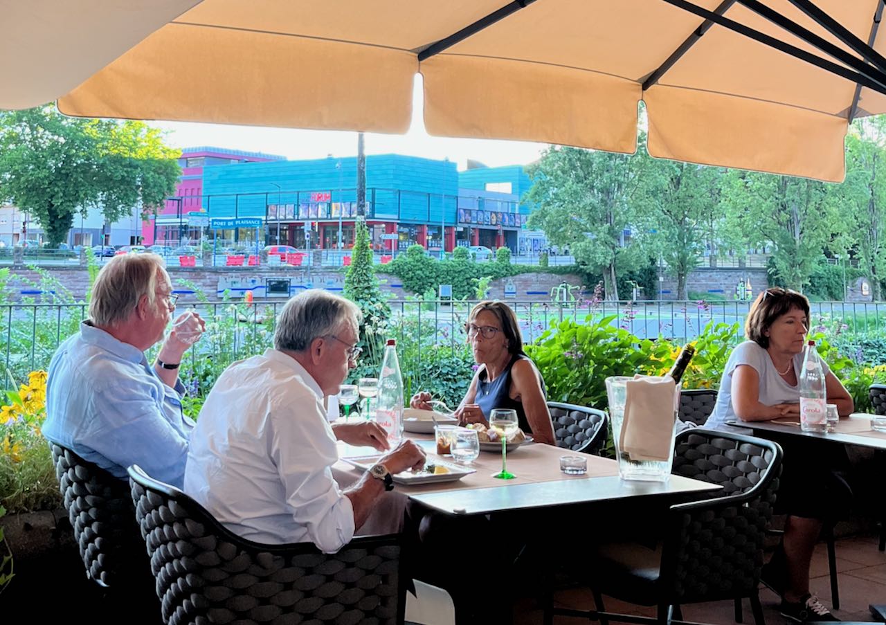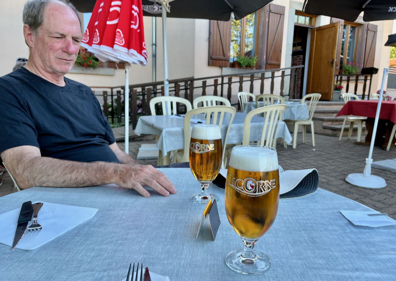 Within walking distance of the marina was one restaurant, the Auberge du Tannenheim. Nothing else was around and almost everything was closed on Sunday. We had to wait until it opened at 6:30 PM so we could get beers. We were lucky we arrived early as we were told that almost all the outdoor tables had been reserved!