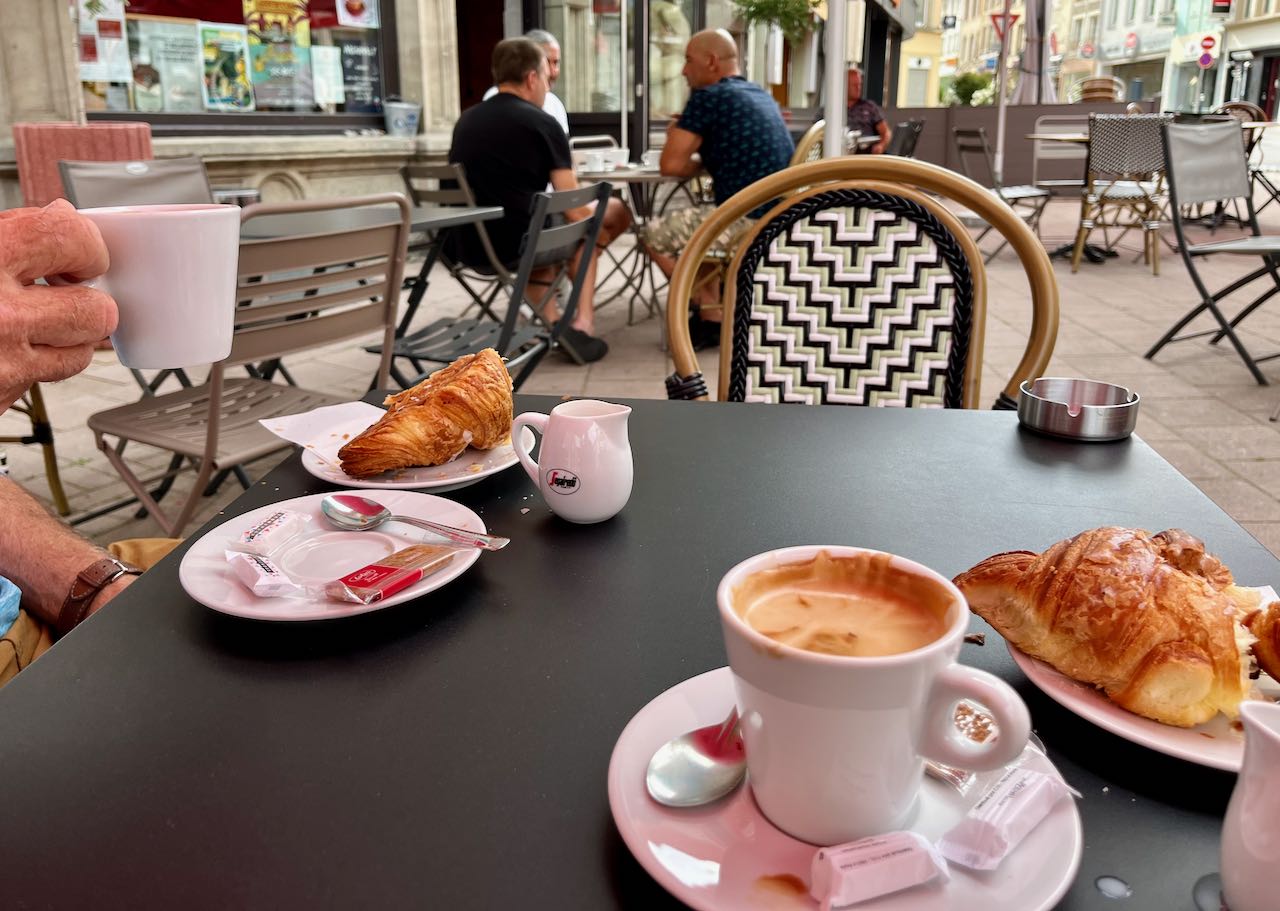 The next morning we cycled a few kilometers into the nearby larger town of Sarrebourg and got breakfast at a cafe.