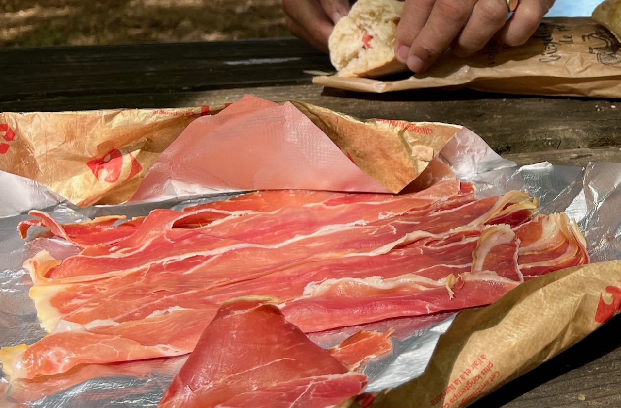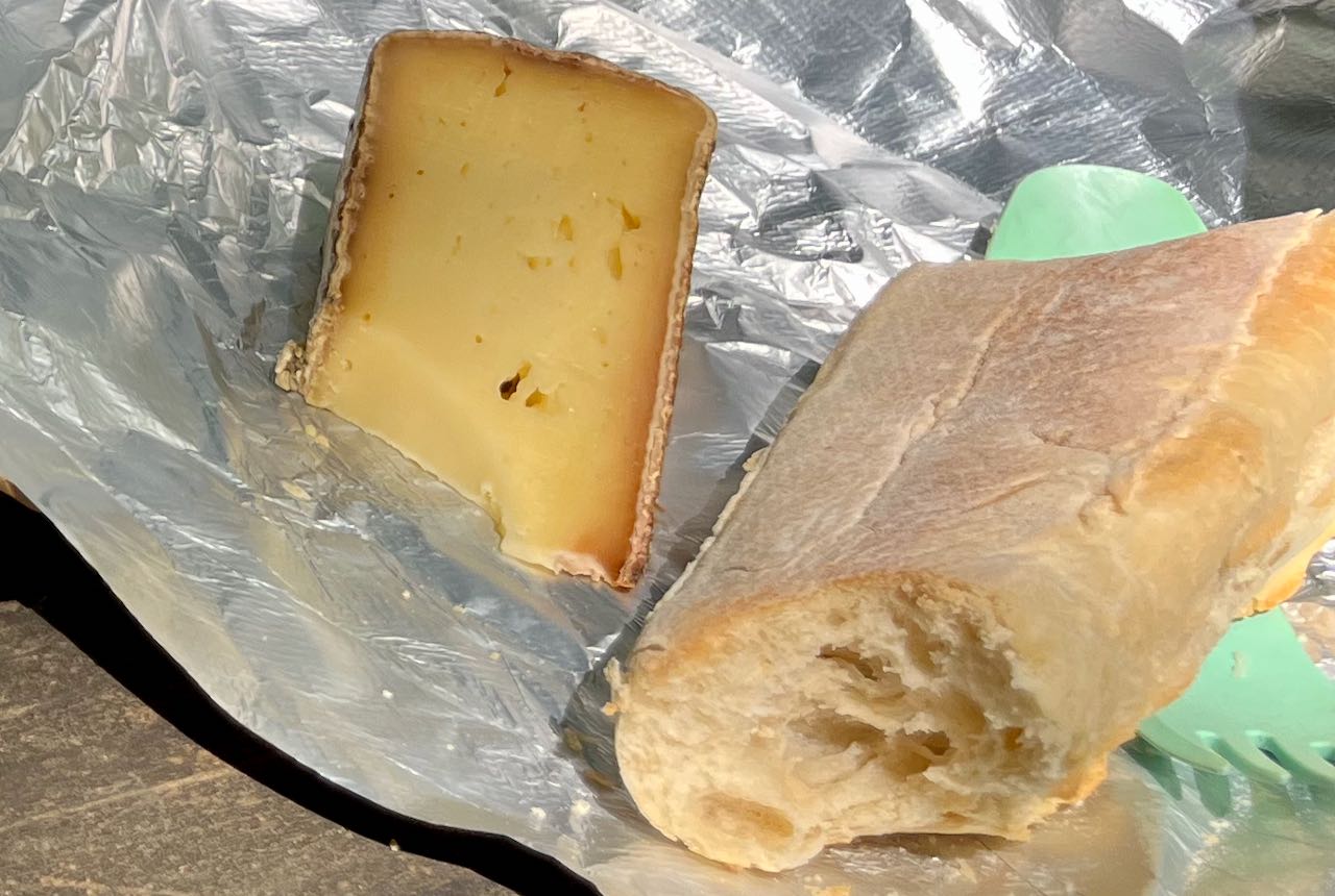 At a town along the way we found a boulangerie that carried pre-made chicken sandwiches. We had lunch at a random picnic table along the trail.