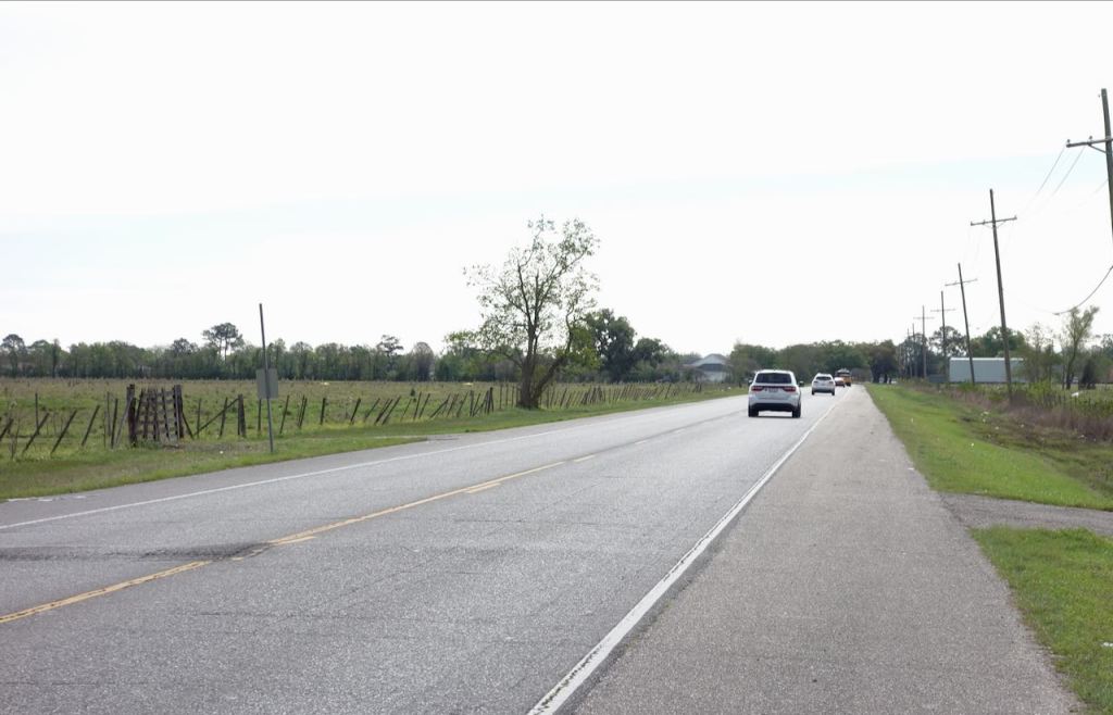 Next to the courthouse was that store, only one of two stores I saw in the entire thirty-five mile stretch south of Poydras LA. The store and restaurant bills itself only as Hunt Brothers Pizza. Inside were friendly people. I had brought with me and eaten earlier my usual peanut butter and jelly sandwich. After more than fifty miles I was still hungry. I asked if they could make me a $6.50 cheeseburger. I should have stayed to eat inside and mingle with the locals but instead went down the road looking for somewhere to take a break outside. It was windy, chilly, and overcast.