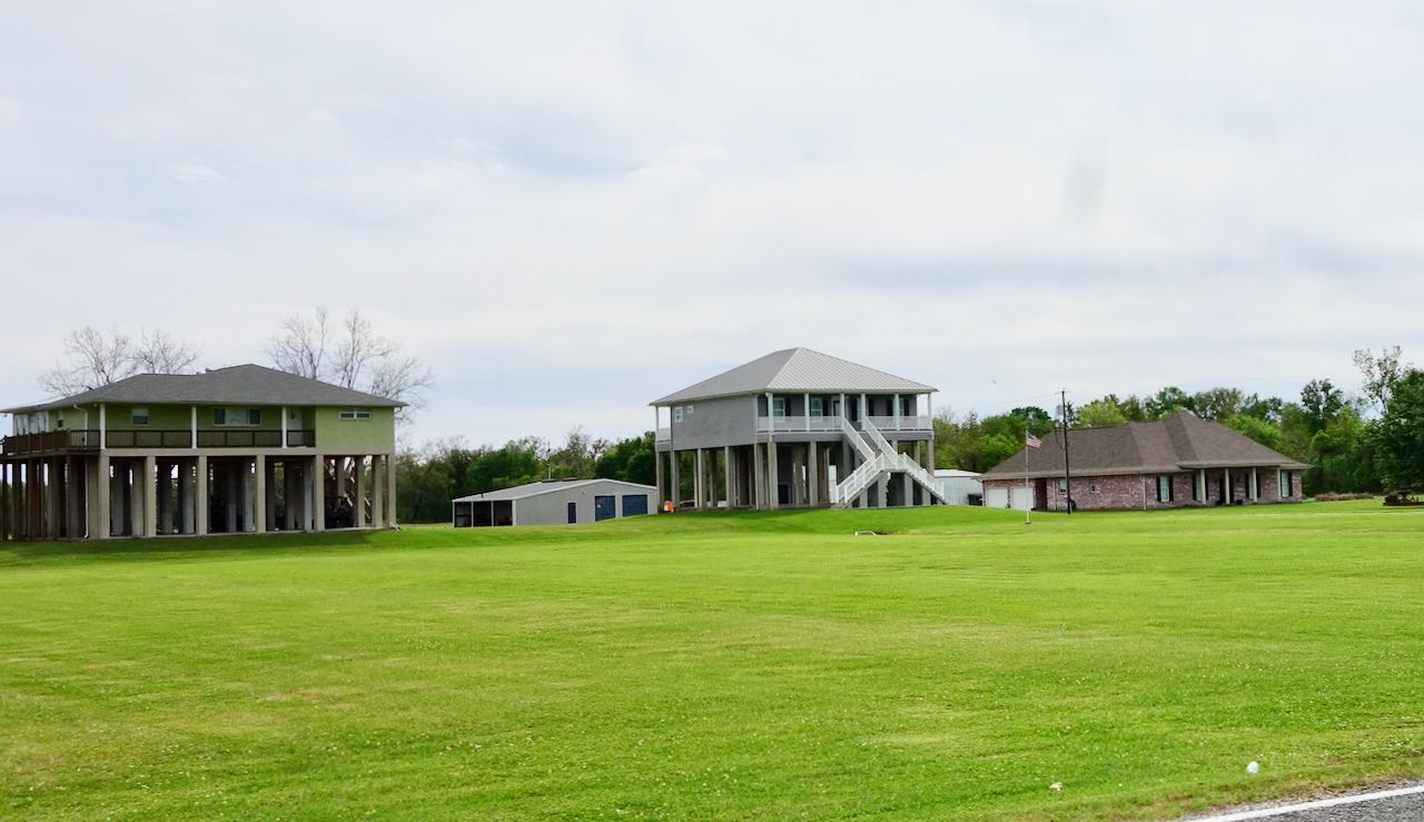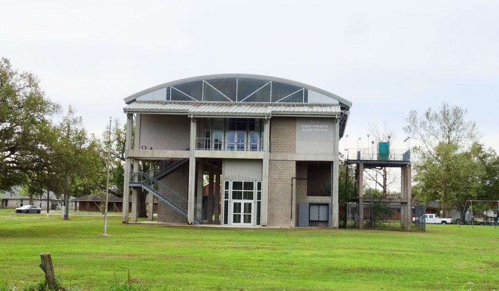 Plaquemines Parish appears to have sizable government money coming in from somewhere, probably oil and gas taxes. Looking relatively new and fronting the neighborhood is this public building labelled Braithwaite Auditorium. It looked weird lurking here, built to withstand the next storm.