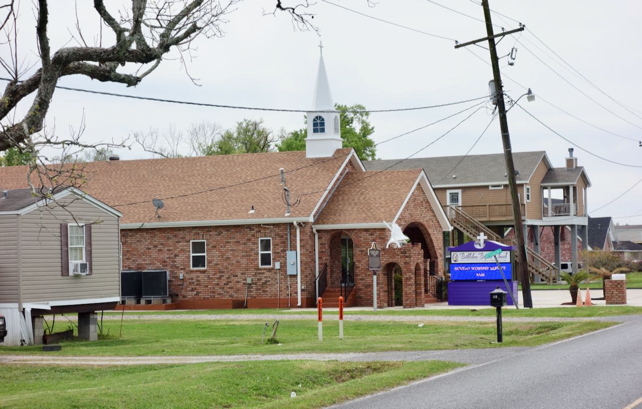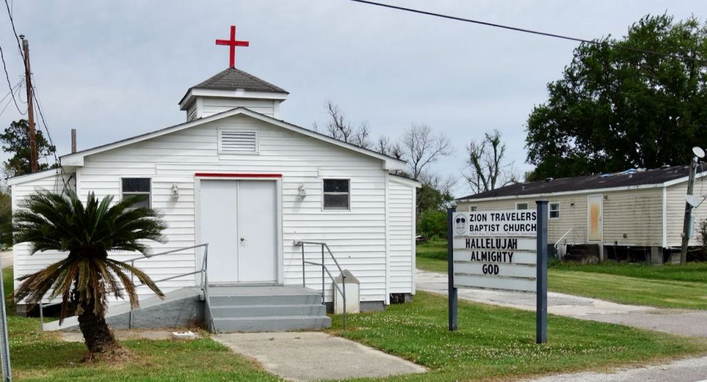 Bohemia LA turned out to be just a few mobile homes with trash strewn yards sitting a hundred yards or so from the Mississippi River. Residents could not see the river because of the levee. The last actual building here at the end of the road is the Bethlehem Judea African Baptist Church. It seems to be waiting for the next storm to carry it away.