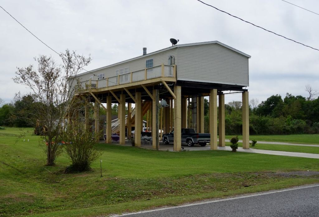 Just beyond the afore mentioned concrete floodgate, and still within commuting distance to New Orleans is a partially abandoned suburban development called Braithwaite Park. It used to include a public golf course. My friends and I drove down here and played that course in the 1980’s and again in about 2001. It was likely the only golf course in America that had a Budweiser machine in the pro shop. Today parts of Braithwaite Park are a wasteland, having been flooded at least once, maybe multiple times. I know the golf course is no more. Do you abandon your slab built brick home, or do you repair it and hope it does not flood again, or do you spend a bunch of money and raise it up?