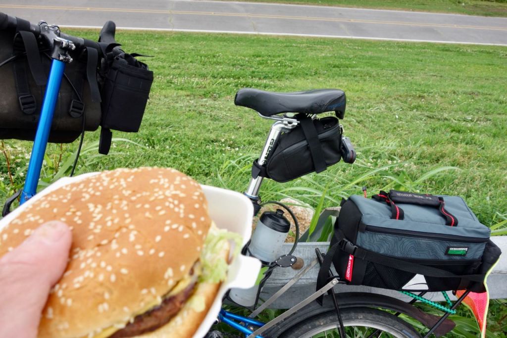 Up on the levee overlooking the wild river there was a bus-stop looking shelter with a bench at a semi-abandoned ferry terminal. This would function as my picnic spot. Befitting my presence in southern Louisiana, home of good food, the cheeseburger was delicious. I tried to do some reading on my Kindle but gave up after a few minutes.