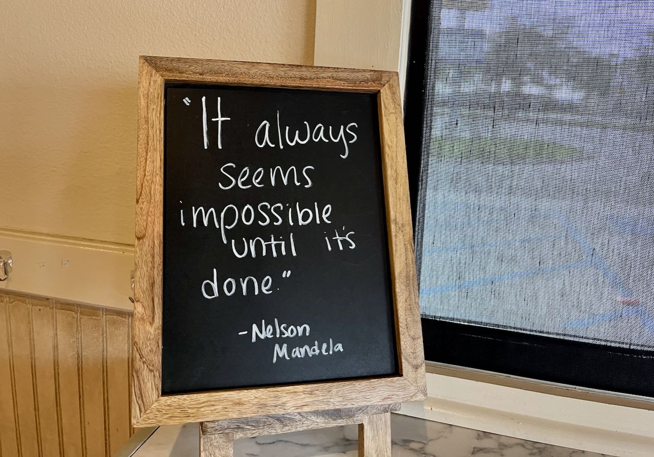 PJ’s is a New Orleans chain of coffee houses. I stopped in its Chalmette location for an oat milk latte, one pack sugar, which I sipped while reading The New Yorker on my Kindle. There was a long line of cars at the drive-thru but the only other person inside was a woman cutting real estate deals on her phone. A Nelson Mandela quote on the wall seemed a little woke for Chalmette.