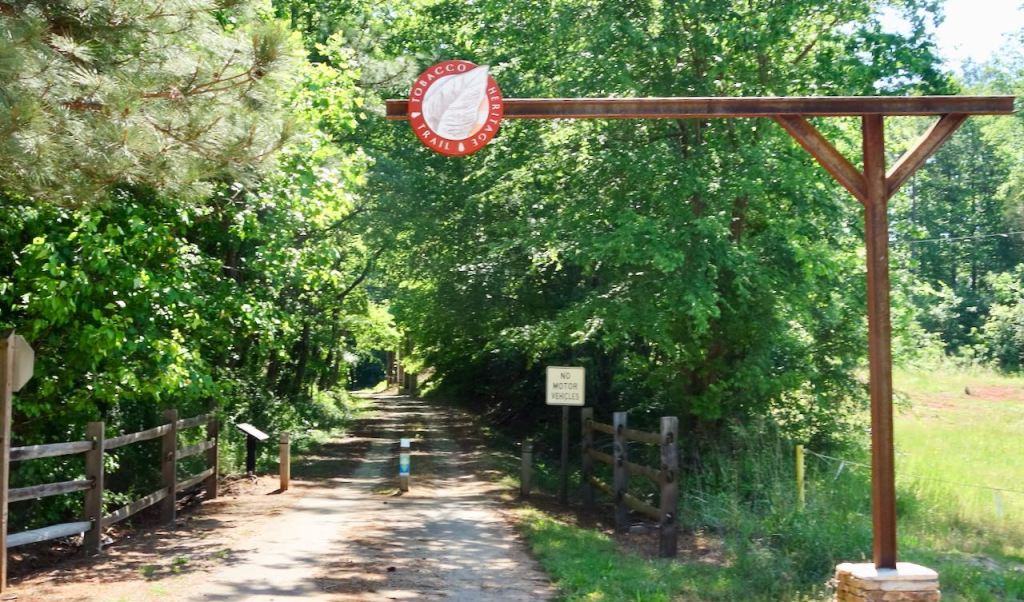 I honestly did not know of the Tobacco Heritage Trail until the morning of the ride. I had intended to bicycle on country roads. The Trail was a great find and it runs along a former rail line. I pulled out the Bike Friday and headed down the fourteen miles towards Lawrenceville, first on some town streets of Brodnax, then onto the trail itself.