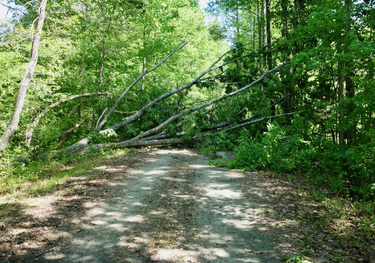 Three miles along the path there was trouble! The trail was blocked by a fallen tree.