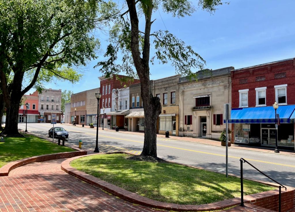 Lawrenceville is largest town in the county and its county seat. The Brunswick County Courthouse and what looks to be an early nineteenth century jail front the almost entirely empty downtown commercial strip.