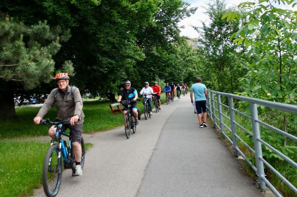 The final five or ten kilometers into Ceske Budejovice were along the channelized Vltava River. Many of the Czech bike paths near urban areas were heavily used, crowded with cyclists and pedestrians, even small children and strollers. Europeans seem to have a much higher tolerance for close passing than Americans. Here it was like motoring on a heavily travelled two highway.