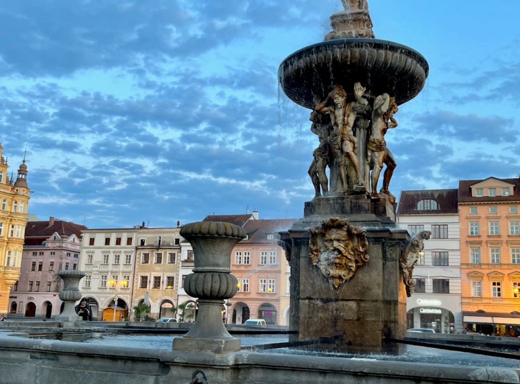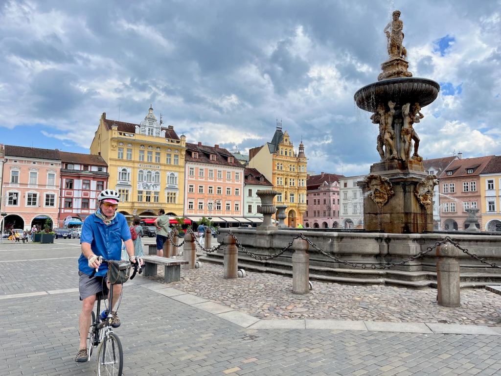 The medieval central square of Ceske Budejovice is lovely. We found a table on the street to have a Budweiser, Czech version.