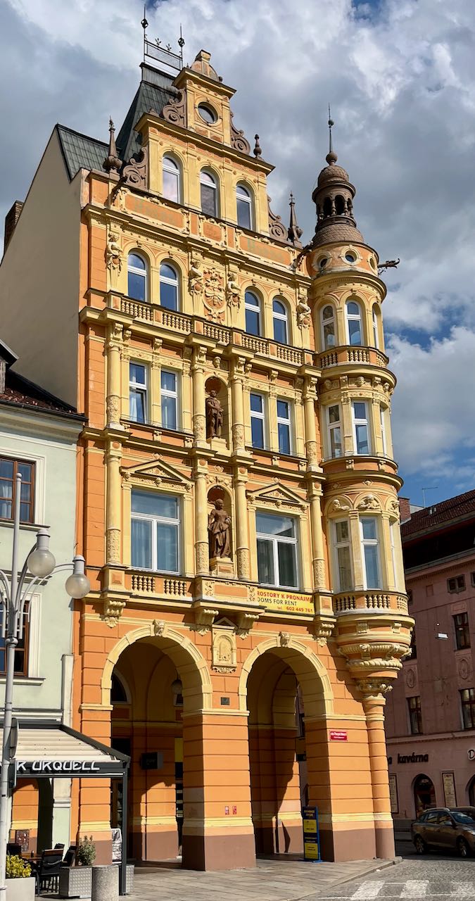 The medieval central square of Ceske Budejovice is lovely. We found a table on the street to have a Budweiser, Czech version.