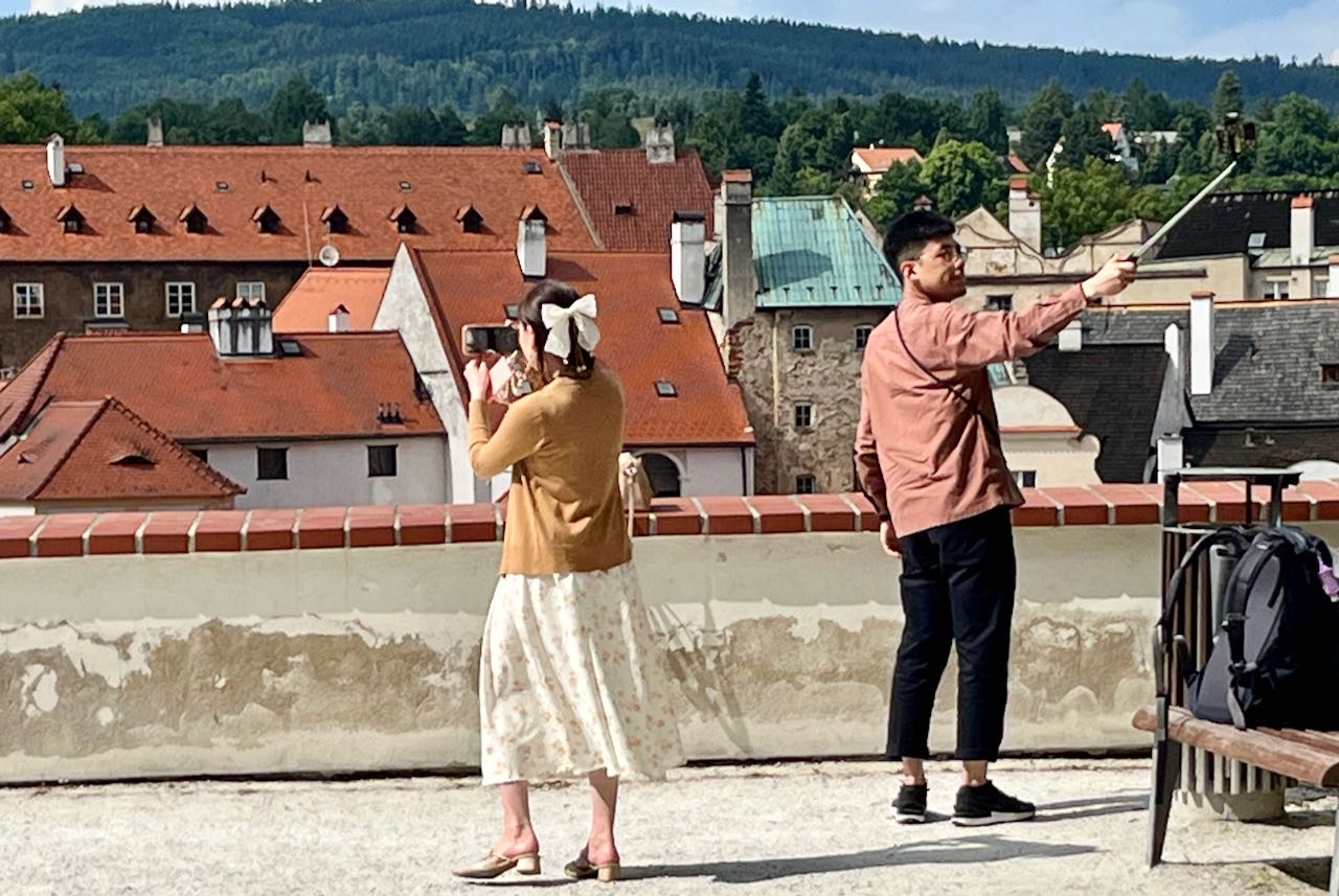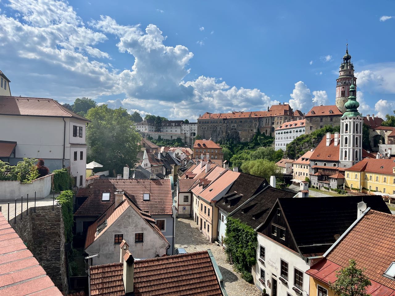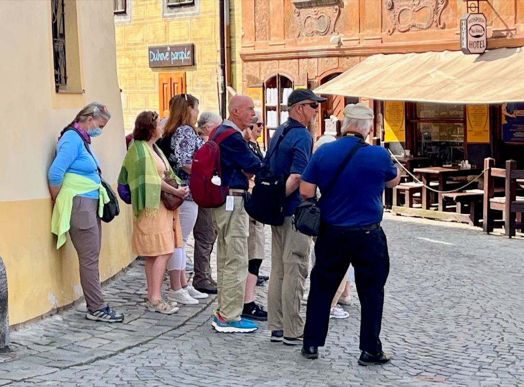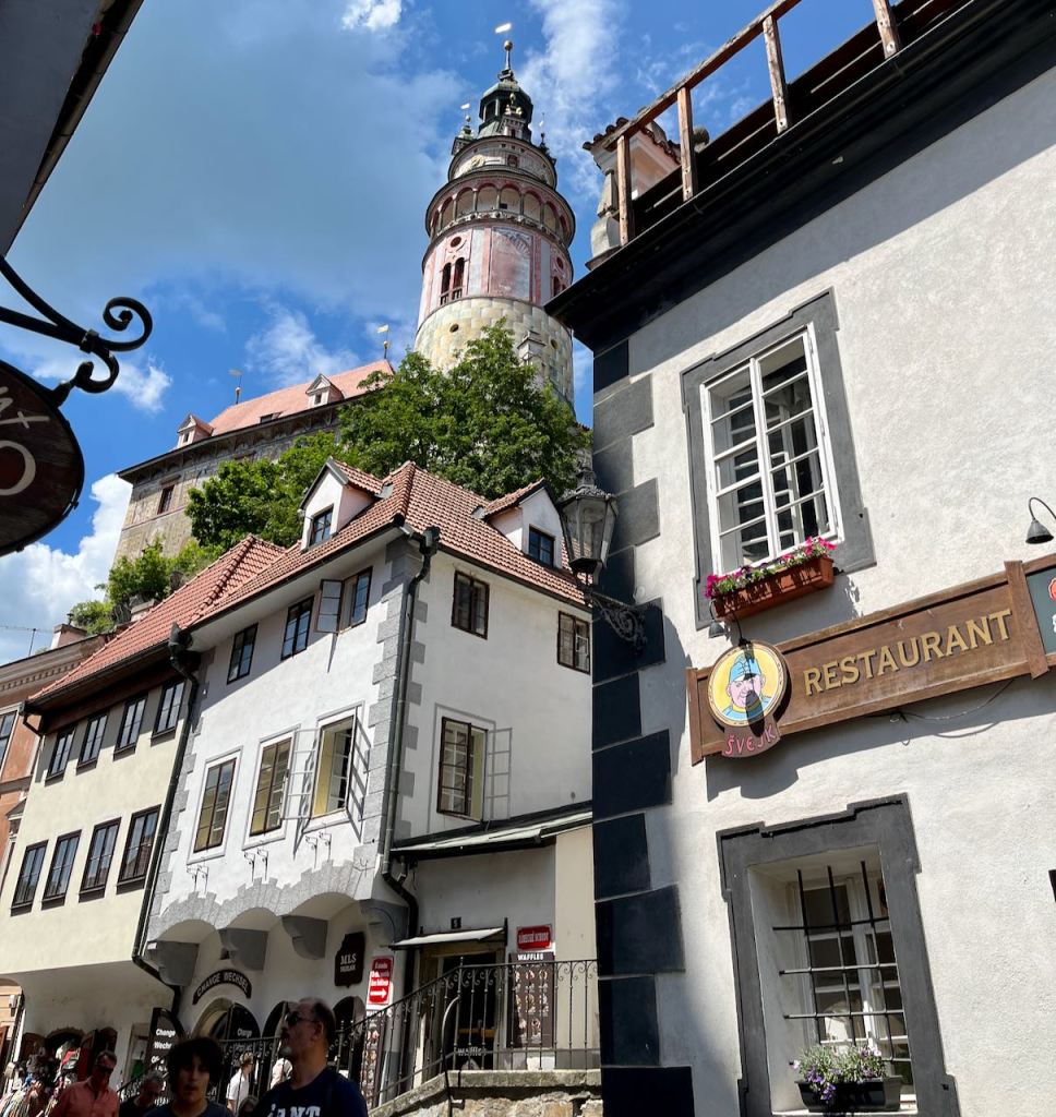 In our five and a half days on the road in Czechia we had not seen many tourists and I really did not feel like a tourist. Here in Cesky Krumlov tourists ruled the landscape. I now know that many of these people were brought here by the busload on day trips driving down from Prague. There were tour groups and tour guides of seemingly every nationality, all taking pictures.