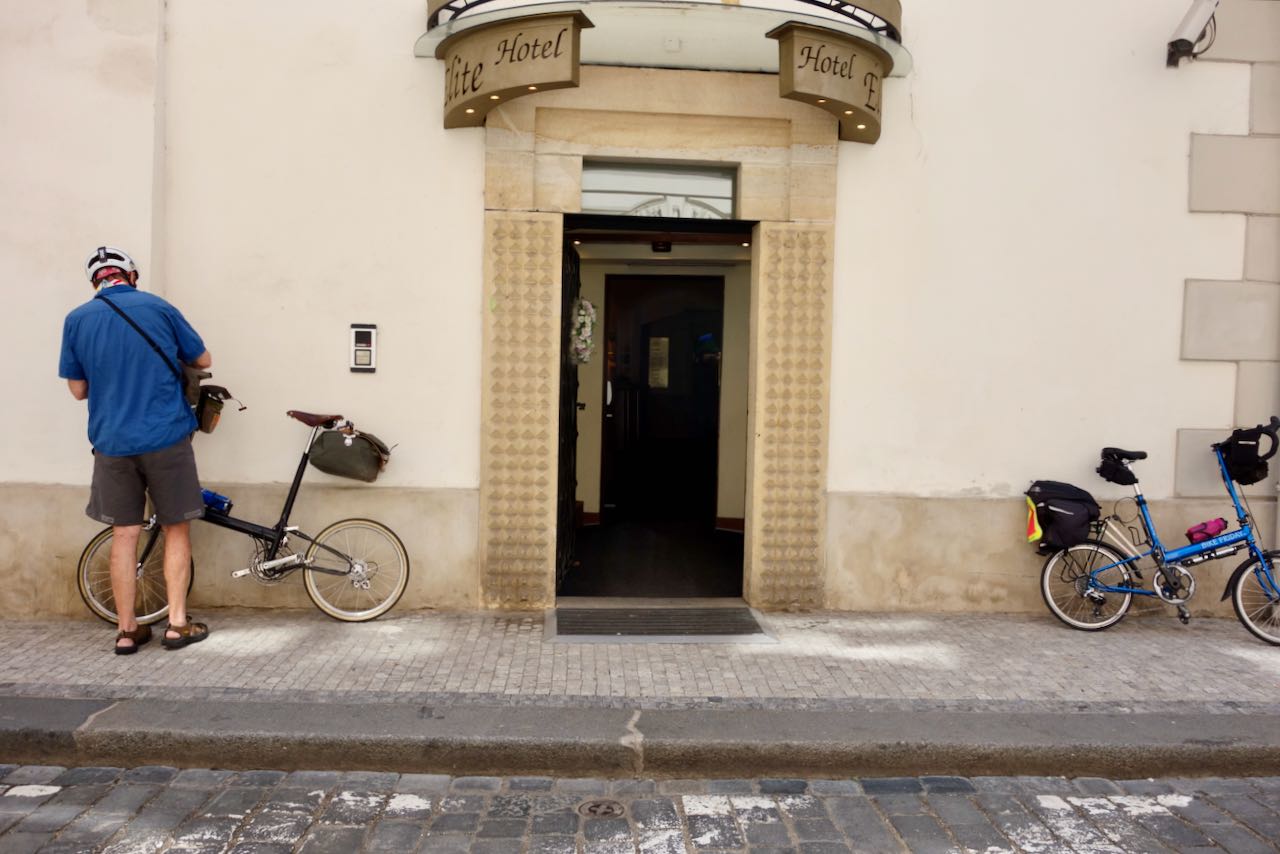 I left Alex and Kristi’s apartment by bicycle at about nine on a Sunday morning. I biked about a mile to Lyman’s hotel in the more central part of the city. We both had Bike Friday folding bikes that we had brought over in suitcases on the airplane.