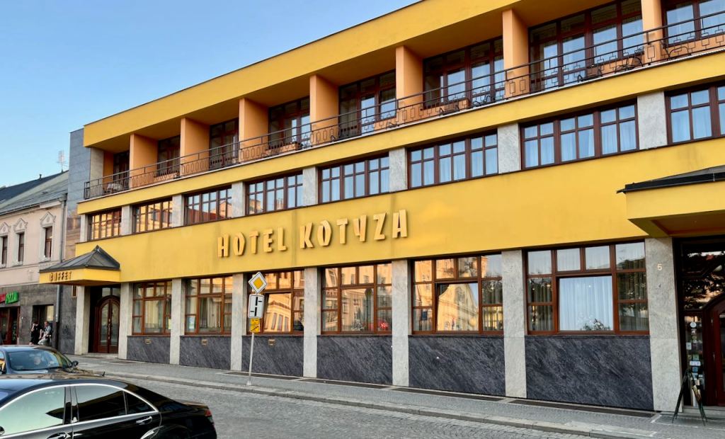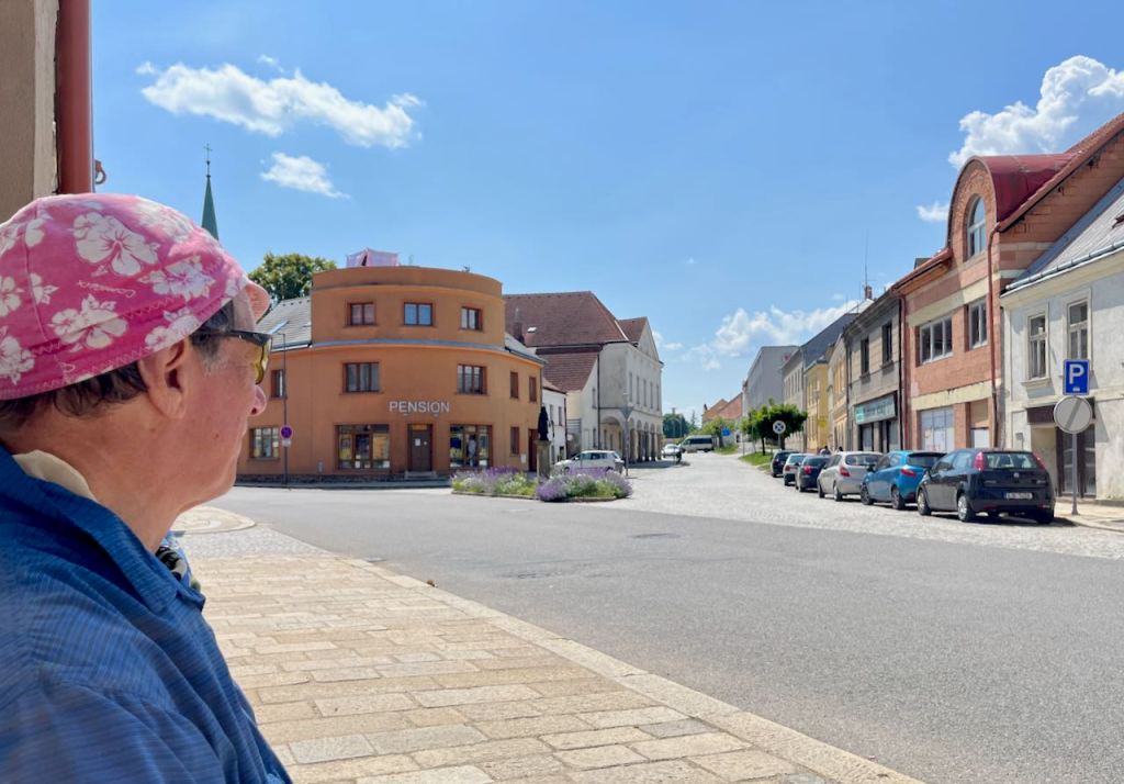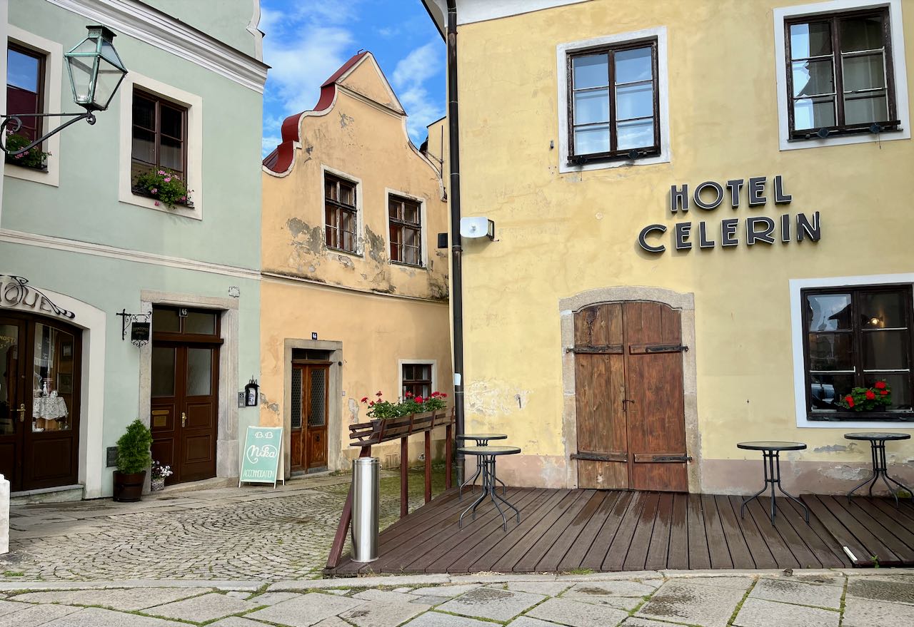 It was a Saturday afternoon. There were lots of tourists in Telc and hotels were nearly full. We ended up getting rooms in separate hotels. Lyman stayed here.
