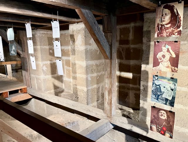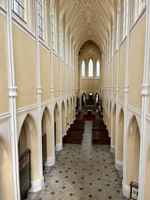 The cathedral was in the process of renovation and had little inside. On the third floor there was a modern art exhibit, weird stuff hanging from the rafters. I bought Tootie a modern art coffee cup in the gift shop.