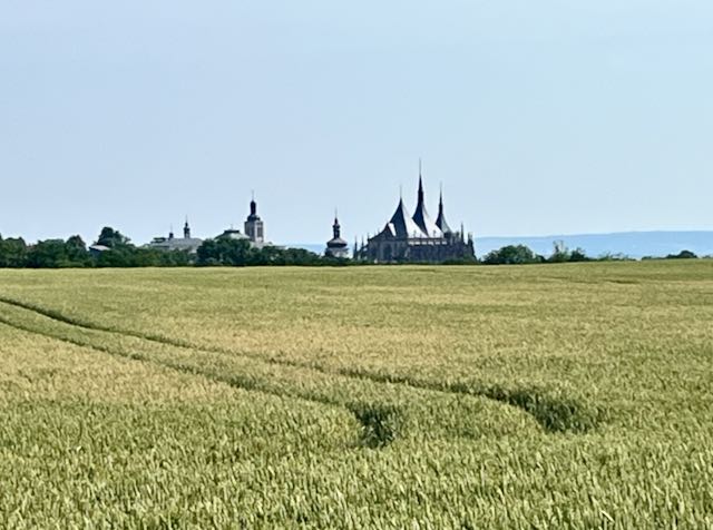 Prague was only seventy-one kilometers further. On cycling away from Kutna Hora the next morning we could see the church back off in the distance.