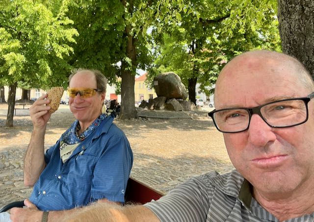 We ate our lunch on the bench of a central square park in a town called Kourim.