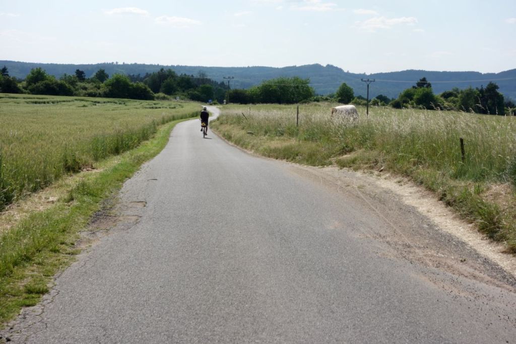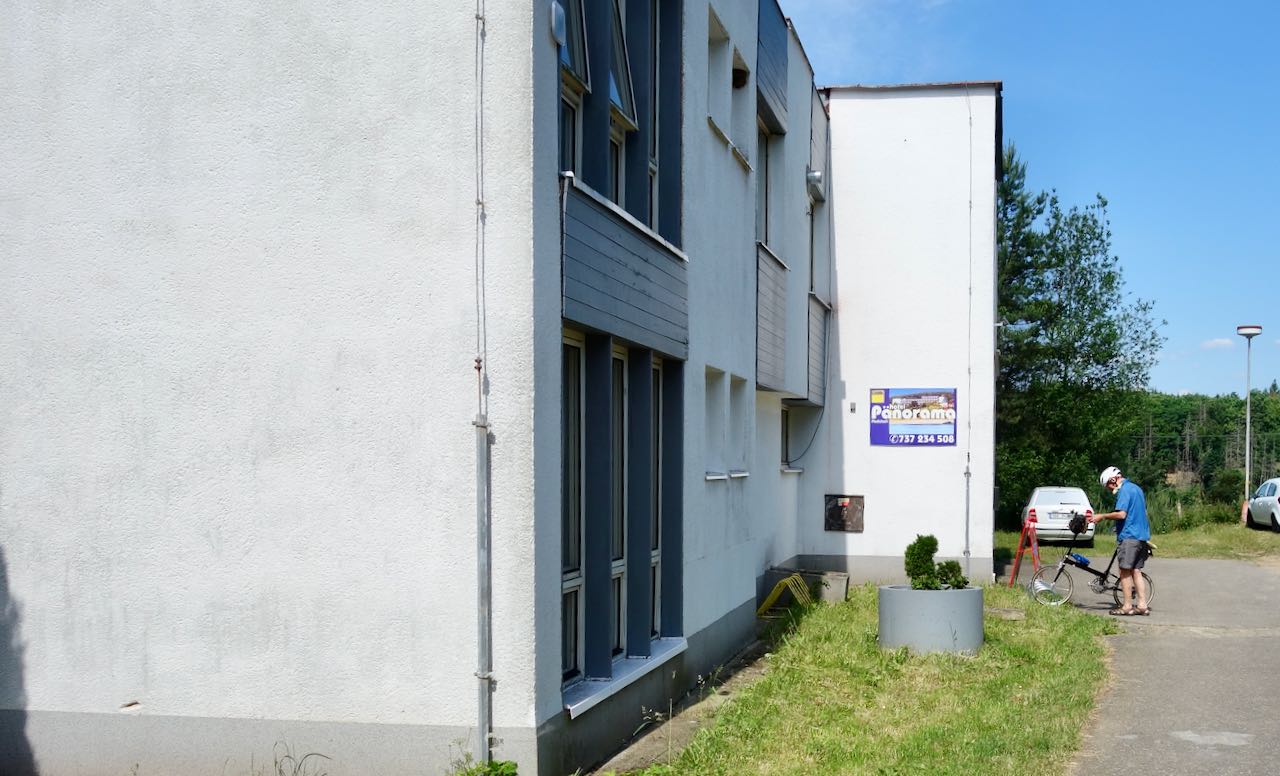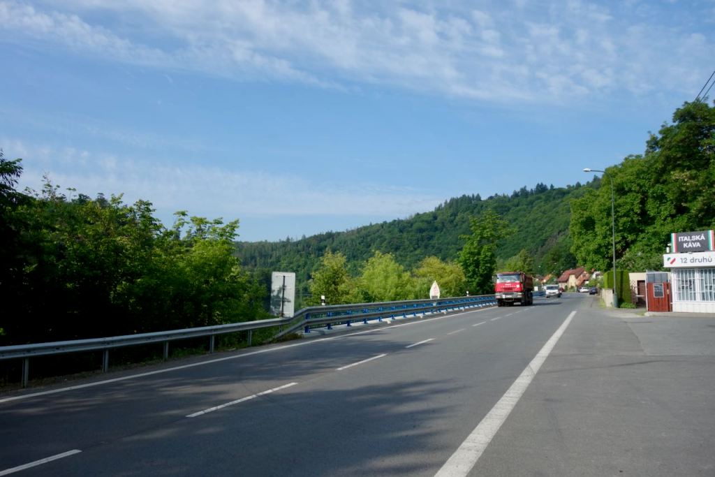 We had slept in the town of Davle, maybe forty kilometers south of Prague. The only downside about our hotel, the Pizzeria Grado Penzion, was that it did not serve breakfast or even morning coffee. It turned out to be the only hotel on this entire trip that did not include breakfast. We packed up and started cycling south.