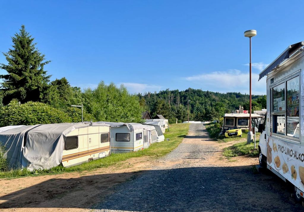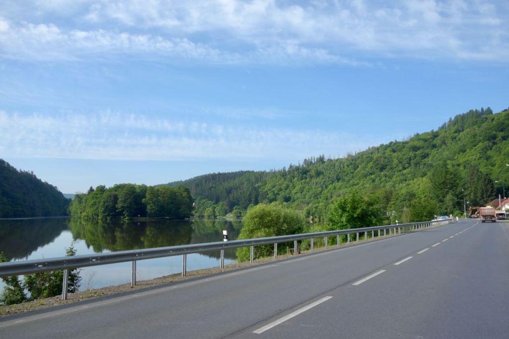 After breakfast we were finally able to leave the highway! On our route south the Mapy.cz app sent us on a tiny road following up an even tinier stream.
