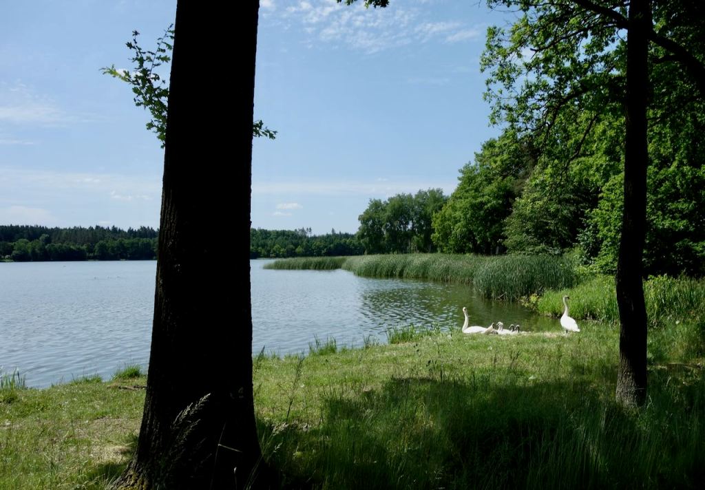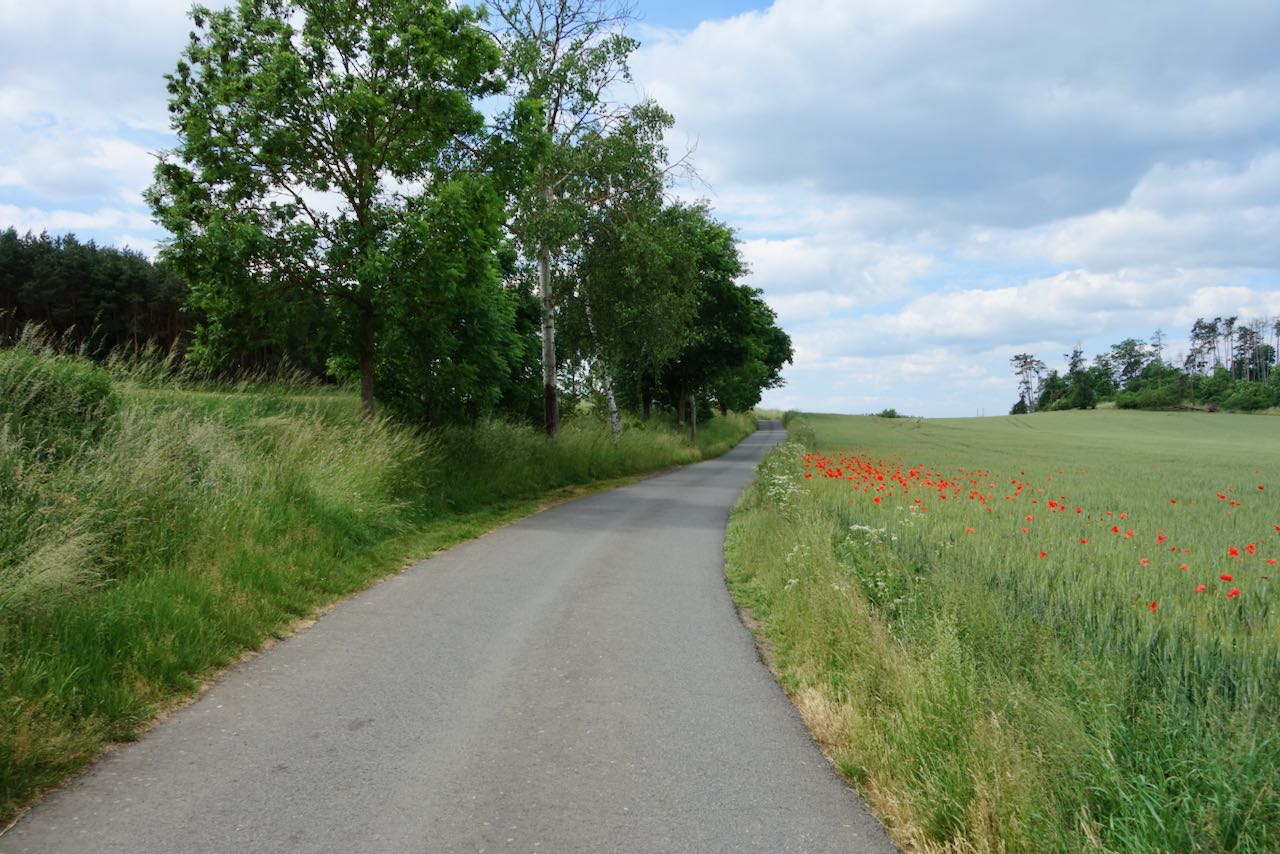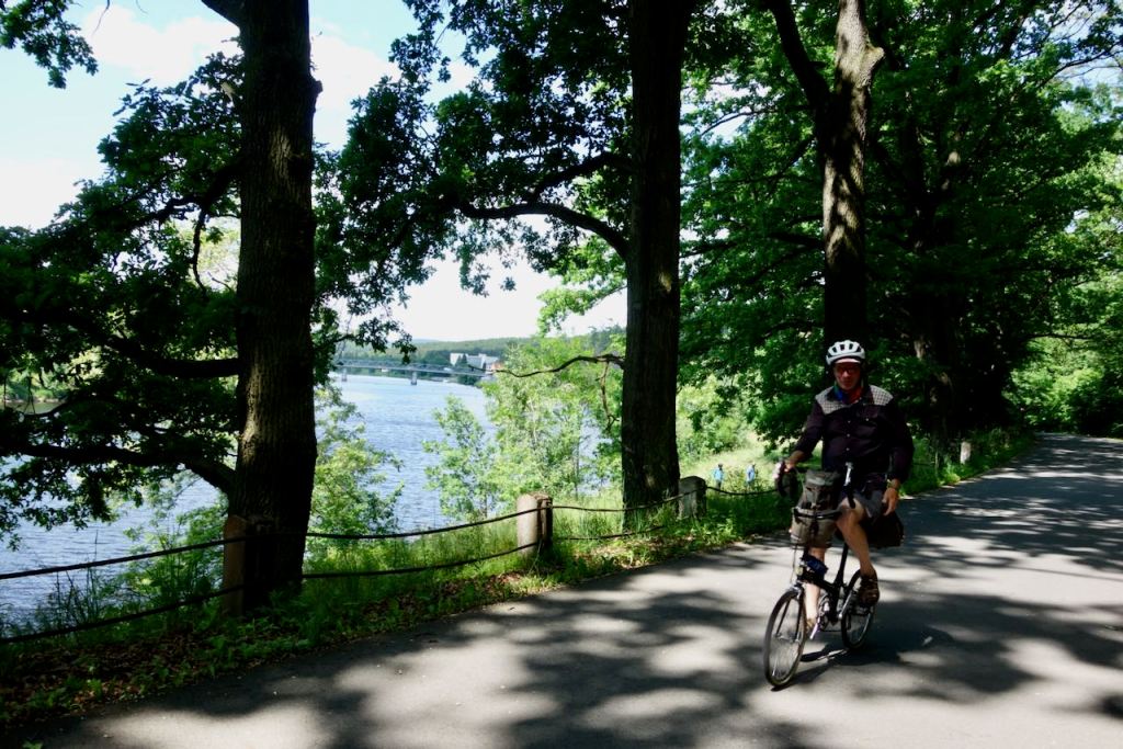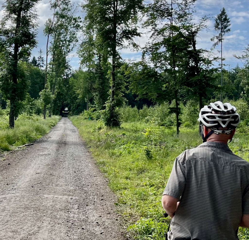 Eventually our route found paved roads, at least for a while. It was to be one of the delights of this trip that for the next eight days we hardly ever had to cycle on roads with significant car traffic. Czech country roads and paths do seem to connect with each other, unlike the Eastern US, which I know well, where such roads are usually dead ends. Nowhere here in Czechia did there seem to be concerns about crossing private property, another big issue in the US. Indeed, on remote American remote gravel roads one has to worry about being shot at!
