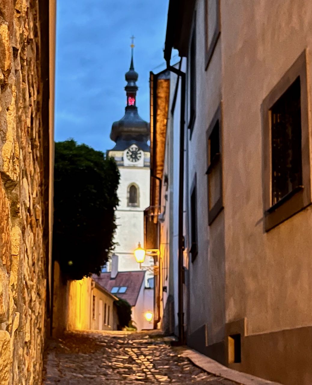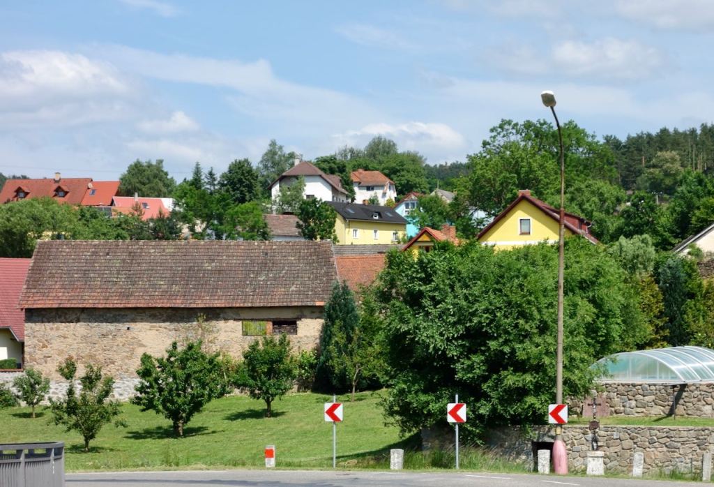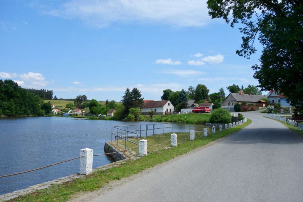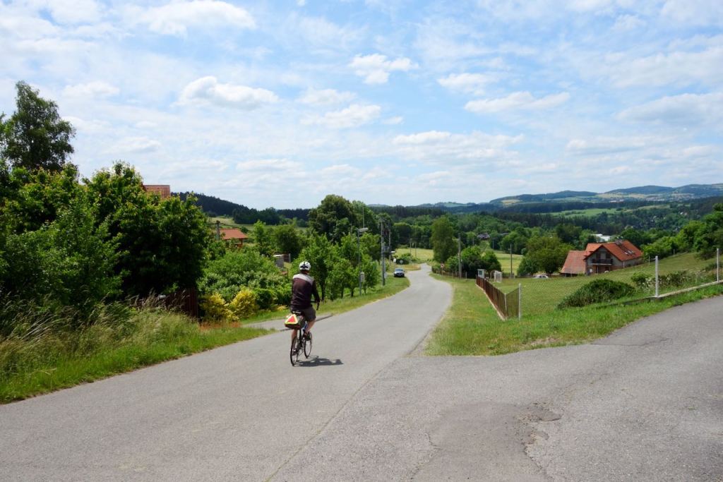 It was about fifty kilometers to the relatively large town of Pisek. The cycling that day was delightful, on country roads and the occasional dirt or gravel path, passing through farmland, woods, and small villages. There were occasional very steep hills.