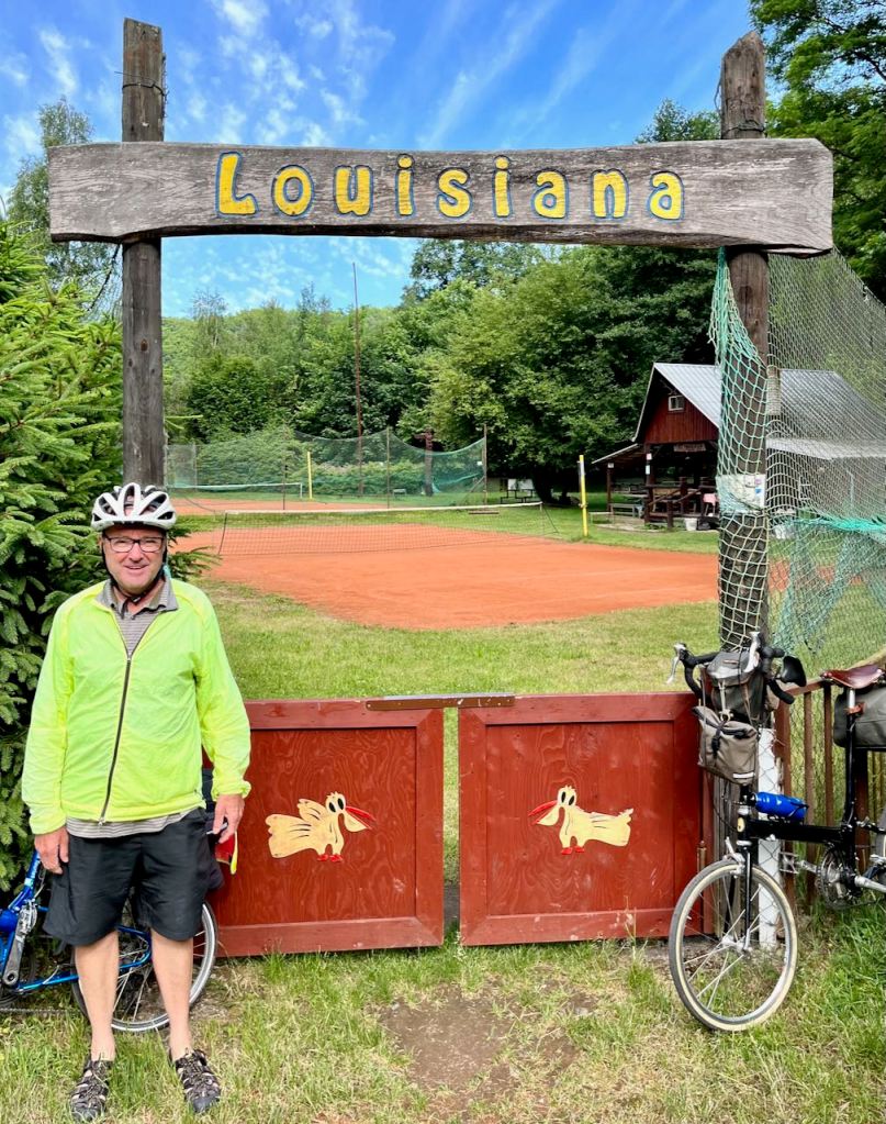 I have no idea why someone’s property on this remote road in Czechia was given the name Louisiana, or what kind of compound this is. Their gate had little pelican cutouts.