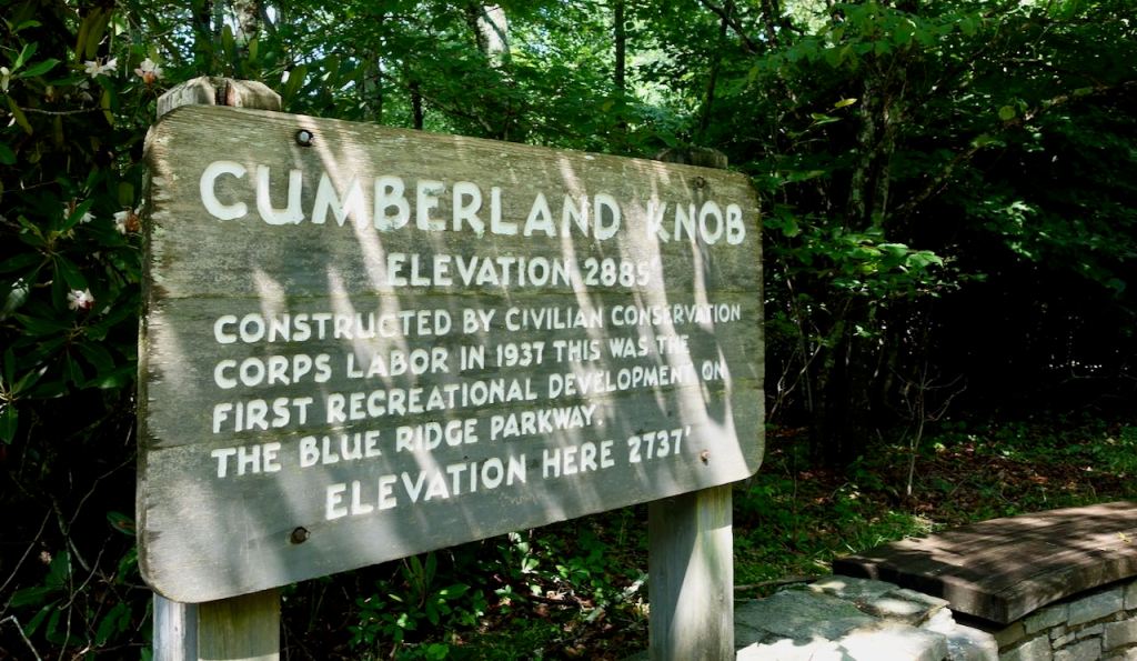I had been bicycling on the Blue Ridge Parkway for about two hours when I came upon a picnic area called Cumberland Knob. Just south of the North Carolina/Virginia state line a marker indicated the spot where construction of the Blue Ridge Parkway began September 11, 1935. The Cumberland Knob picnic area was built only two years later, in 1937. This was back when infrastructure projects got done quickly.