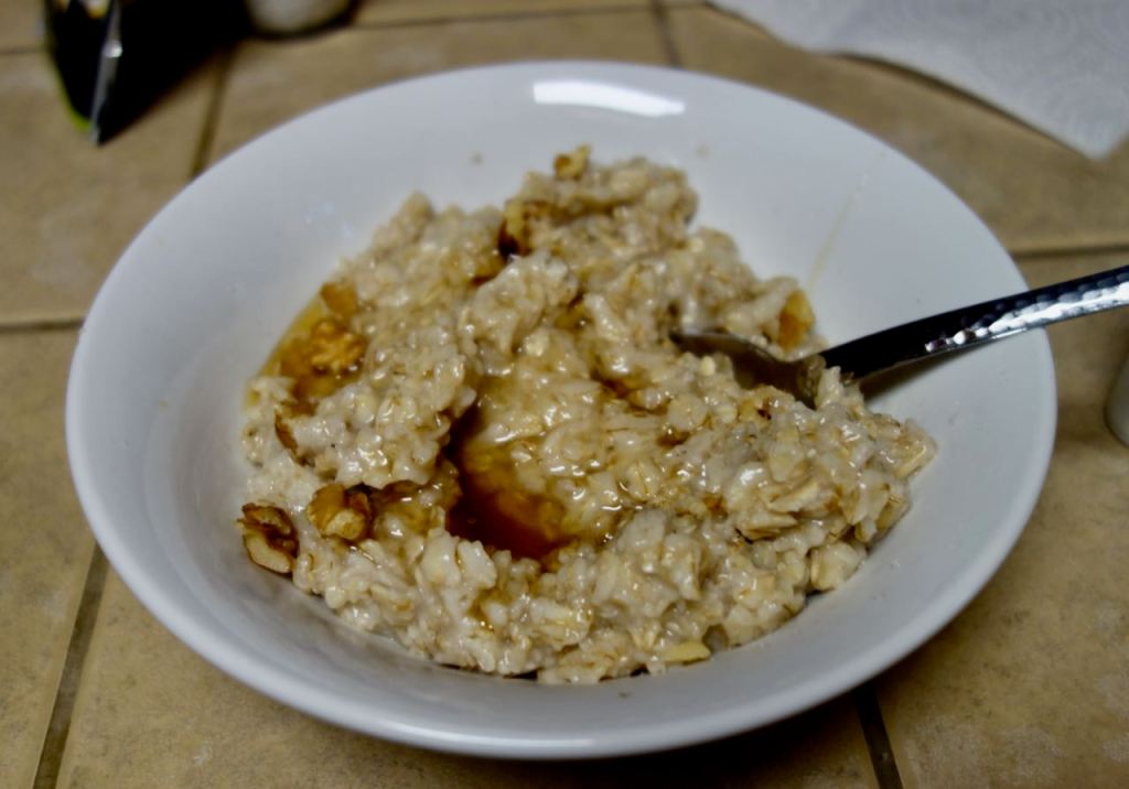 The next morning I cooked oatmeal that I had brought and dumped honey and walnuts on top.